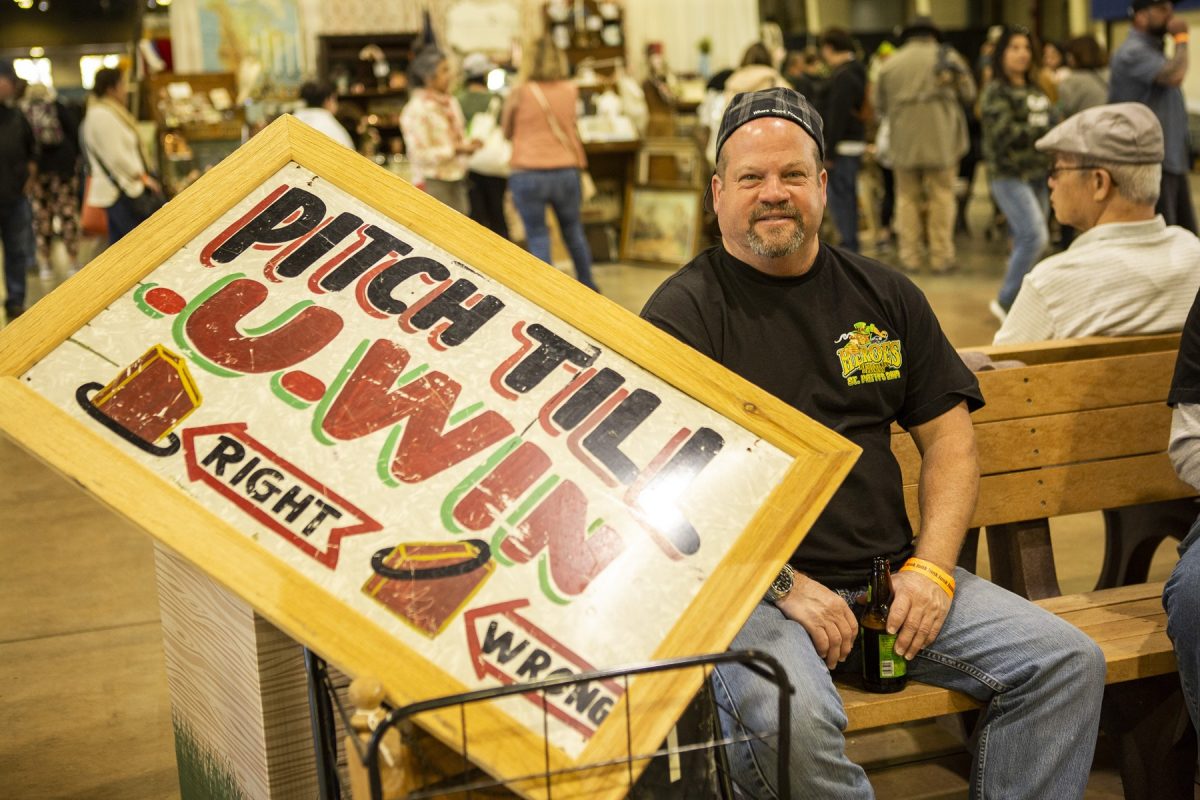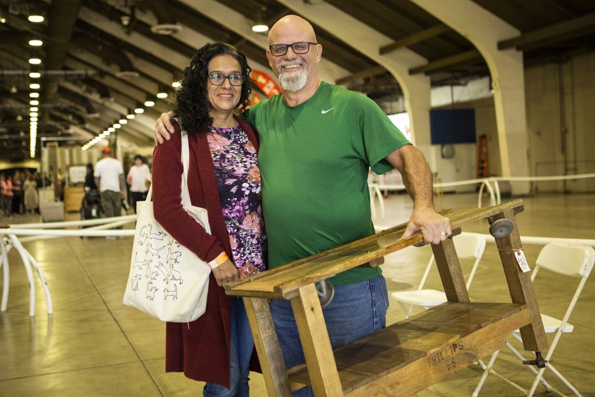 重たそうなシェルフを軽々と持つおっさんは85ドルで手に入れたぜと鼻息も荒い。その笑顔からイベントを楽しんでいる様子は一目瞭然。奥さんも当然ながらアンティークが大好き。
