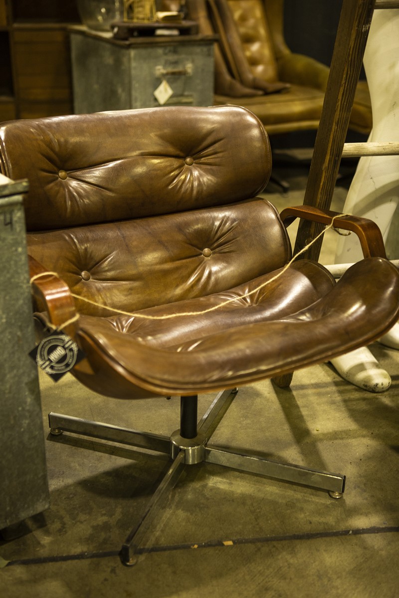 プライウッドを曲げたフレームにレザーの張り地というミッドセンチュリー系チェアは950ドルと強気だ。