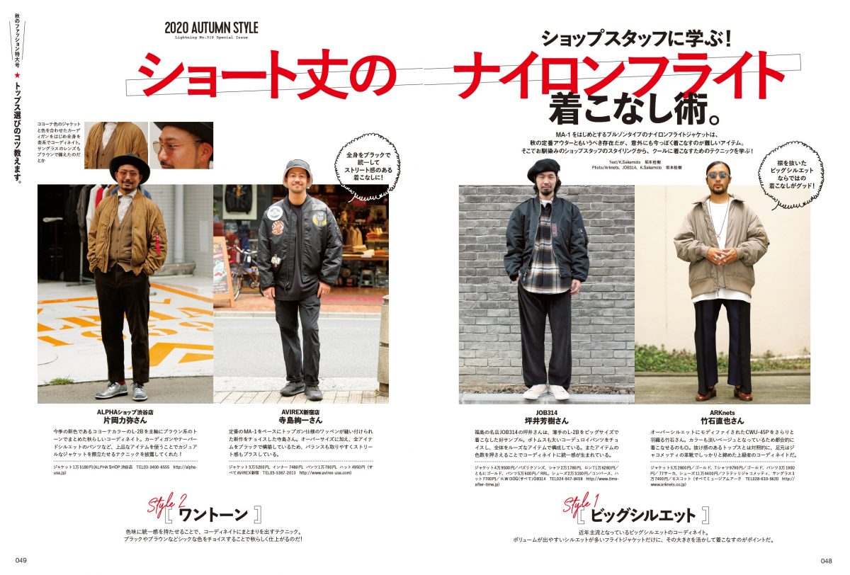 着こなしの難しいアイテムだって、スナップサンプルがあるから安心。デニムジャケット、スタジャン、革ジャン、ネルシャツ、コーチジャケット、ナイロンフライト、ミリタリー……僕らの好きなトップスの着こなしのコツを網羅するだけでなく、主要ブランドの新作の数々も掲載されている今月号のライトニングを読めば、今年の秋の装いは問題なし!