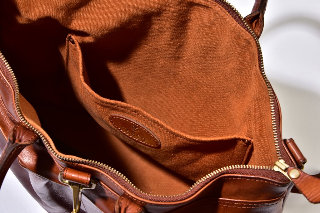 2日後にバッグが家に届き、見てみてびっくり。最高だわ、これ。ポケットは大きくて使いやすいし、革質は最高だし、そもそも米軍のヘルメットバッグモチーフなので、A-2にもばっちり似合う。まさに夜に感謝したい気分。