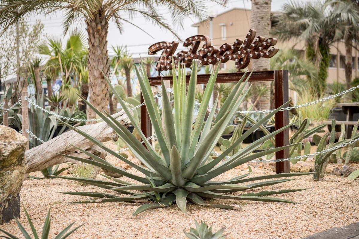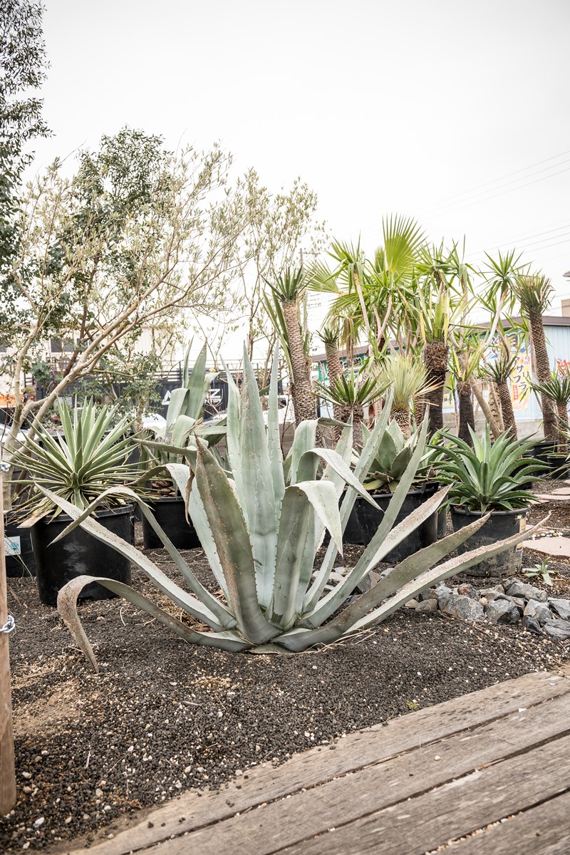 縁にある赤いトゲがとにかくカッコイイと、オーシャンサイドガーデンでも一押しのアガベのファンキアナ。子株をよく吹き、成長も早く大型になる品種で、耐寒性に強く育てやすいのも特徴。参考価格8万円