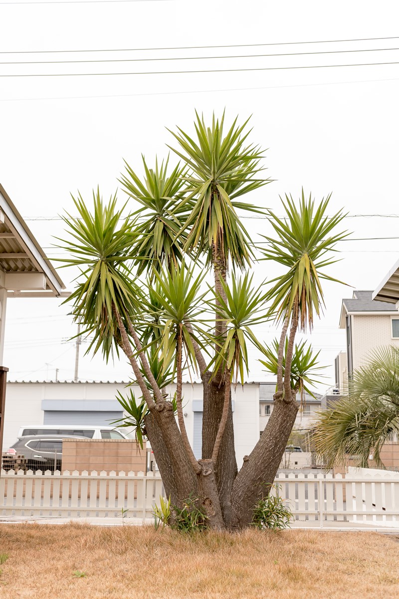 幹の下の根部分が膨らんでいて、まるで象の足のようだということで名付けられたユッカのエレファンティペス。南国感たっぷりに生い茂ってくれるので、熱帯系のドライガーデンを作るには最適。参考価格50万円