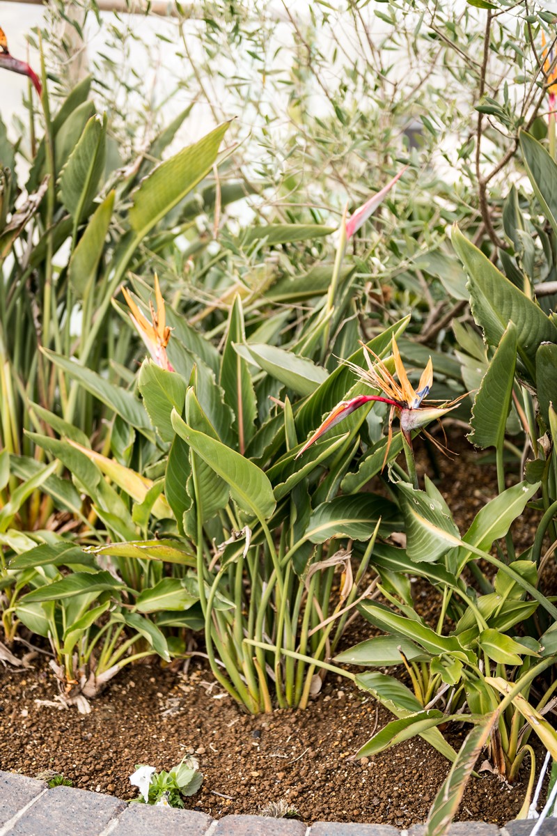 南アフリカが原産で乾燥に強く綺麗な花を咲かせるストレチア・レギナエ。南カリフォルニアでよく見られ、ロサンジェルス市のオフィシャルフラワーでもある。リゾート感を演出するにはもってこい。参考価格1万円