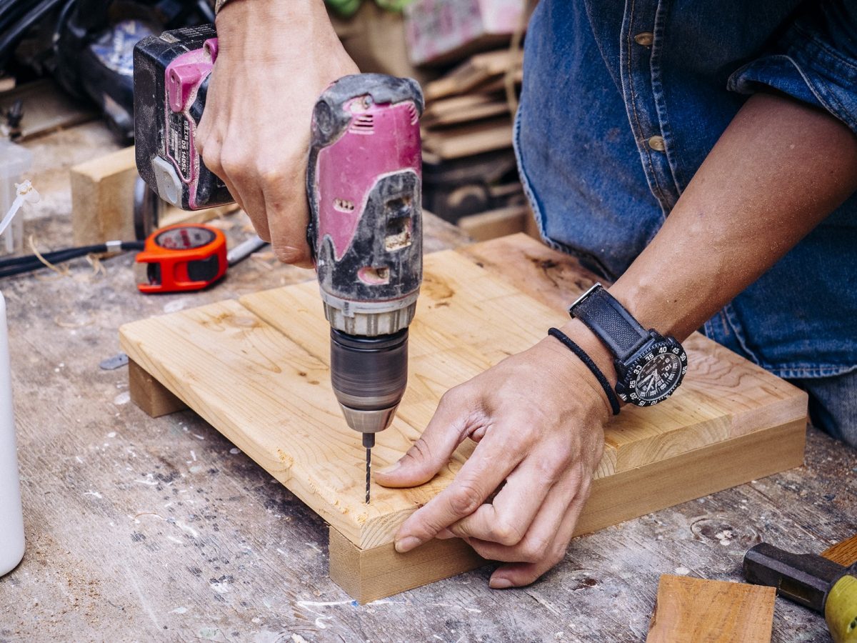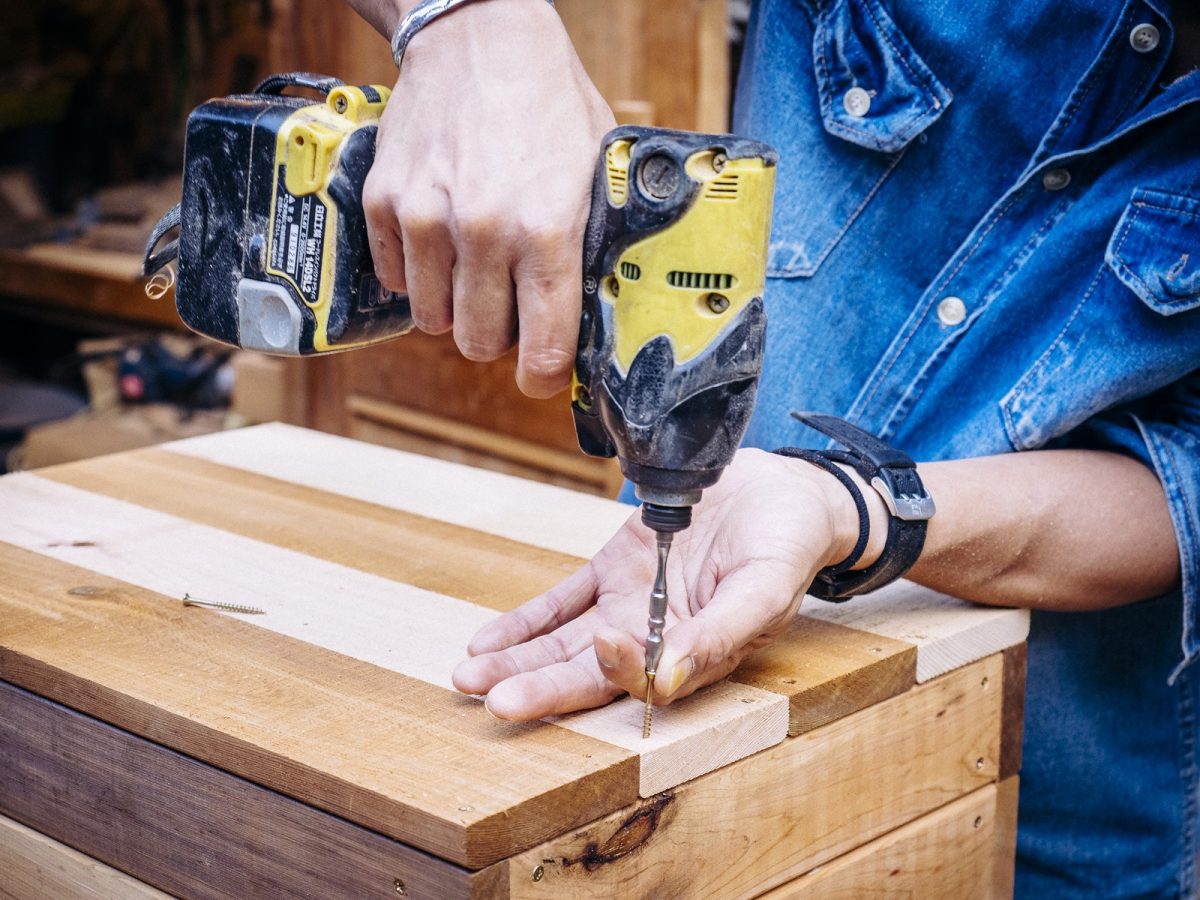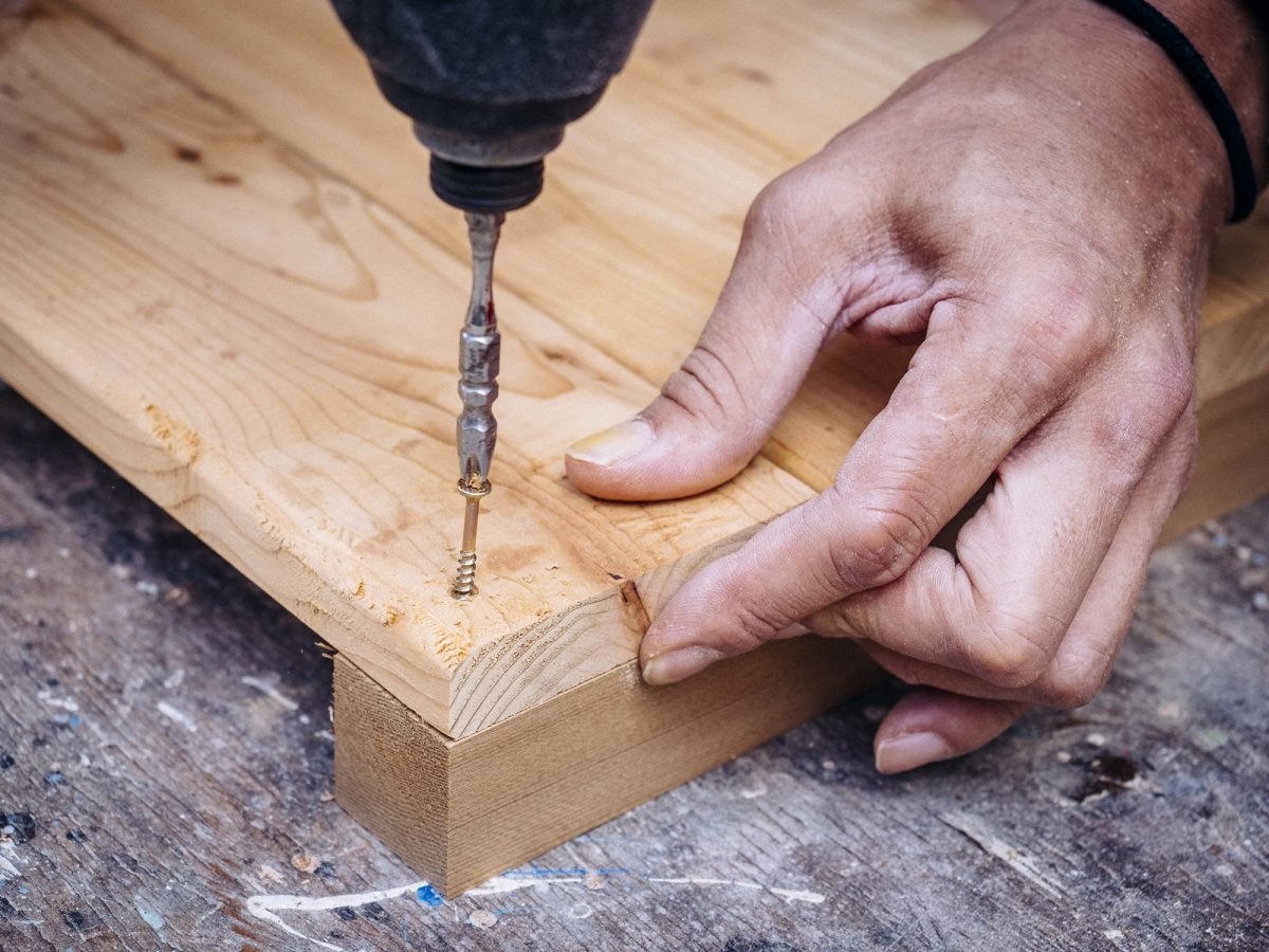 ビスの頭が木材に埋まるように少し大きなビットでビスの頭分の穴を広げる。