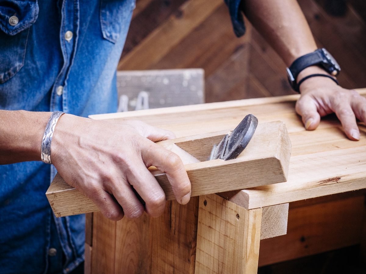 木には縦に繊維が入っているので、角に対して真っ直ぐにカンナをかけてしまうとガタガタになってしまう。斜めにカンナをかけるのがポイントだ。