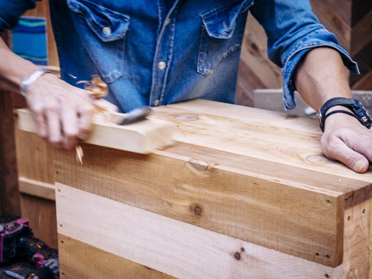 カンナで削った角を紙やすりで滑らかにしていく。これをするとしないとでは、手触りが断然変わってくるので、ぜひ試してみて!