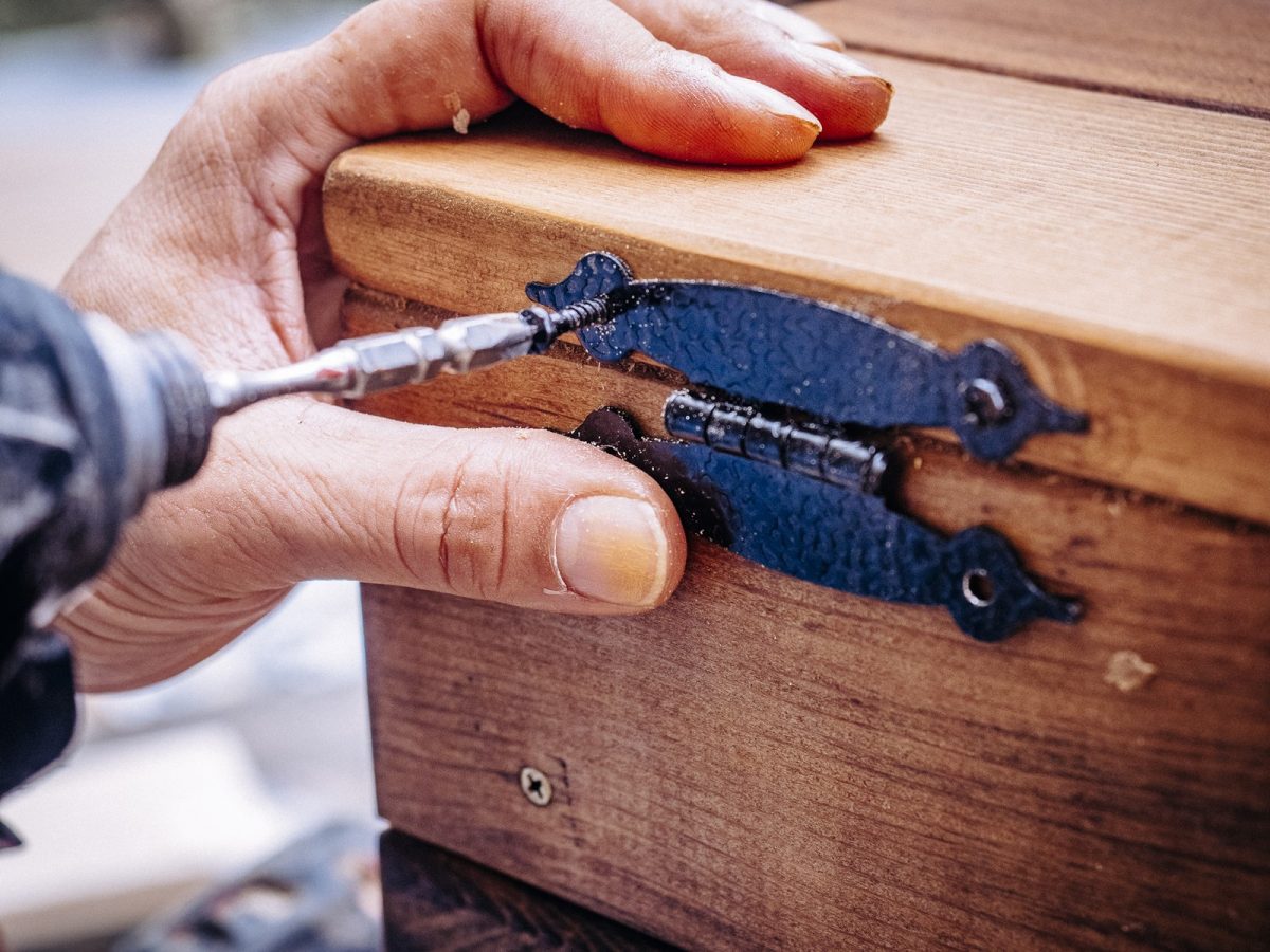 次に蓋とボディを蝶番で繋げる。今回使用したのはウエスタン蝶番。