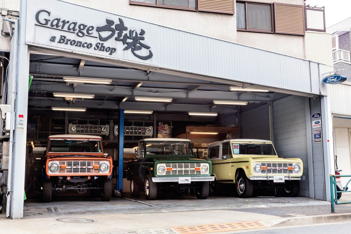 アーリーブロンコを中心に丸目時代の4×4を取り扱う「ガレージ弦巻」と「ブロンコランチ」の両ショップ。いずれも世田谷区の住宅街の真ん中にある異色のショップだ。