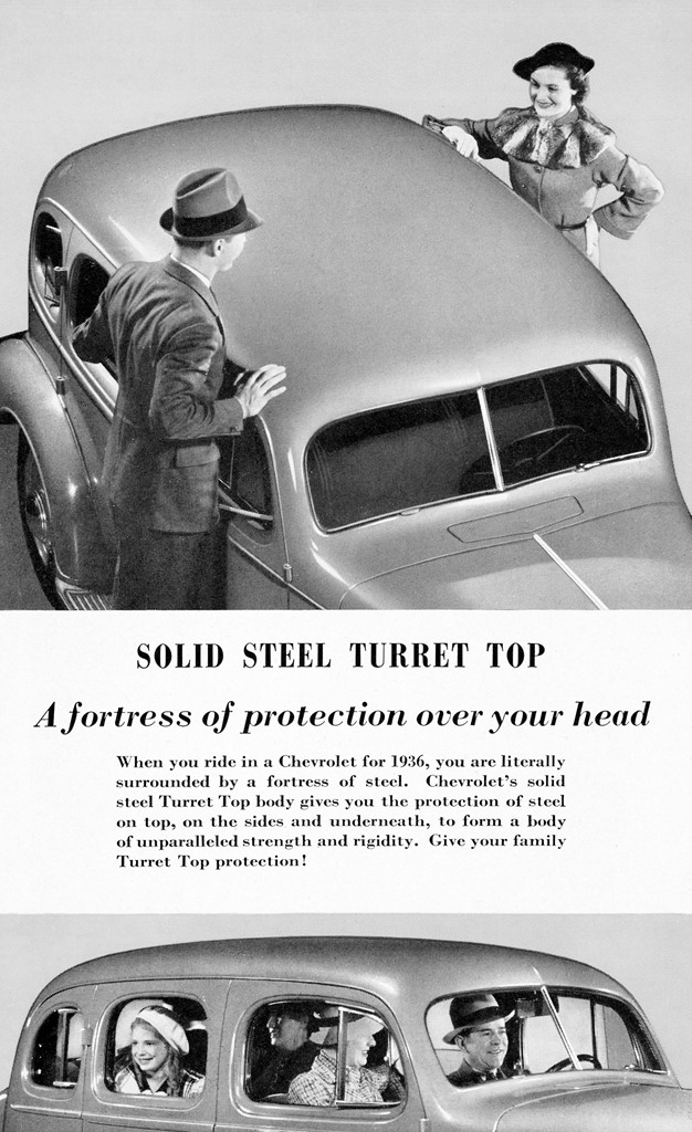 【1930年代】プレス技術の発達でボディが丸みを帯びていく。シェビーが鉄の屋根を開発。