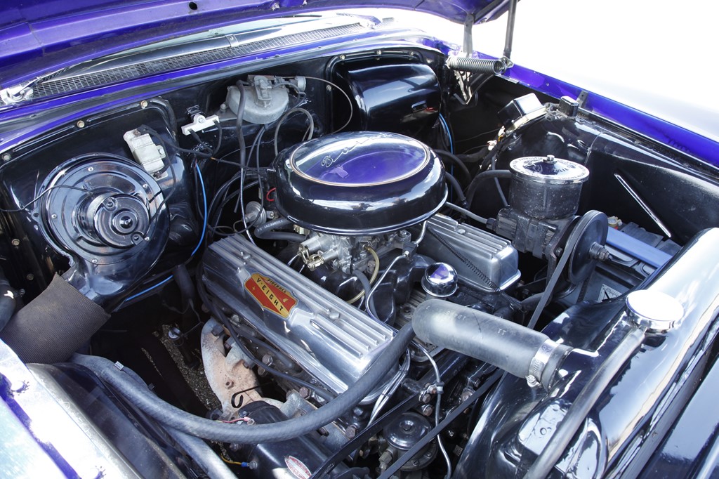 フォードが’30年代からV8を搭載していたのに対して、シボレーは長らく直列6気筒をスタンダードエンジンとして使用してきた。そしてついに’55年にセダン用に新開発したV8は、OHV機構で軽量ながらそれまでのどんなV8よりパワフルだった。