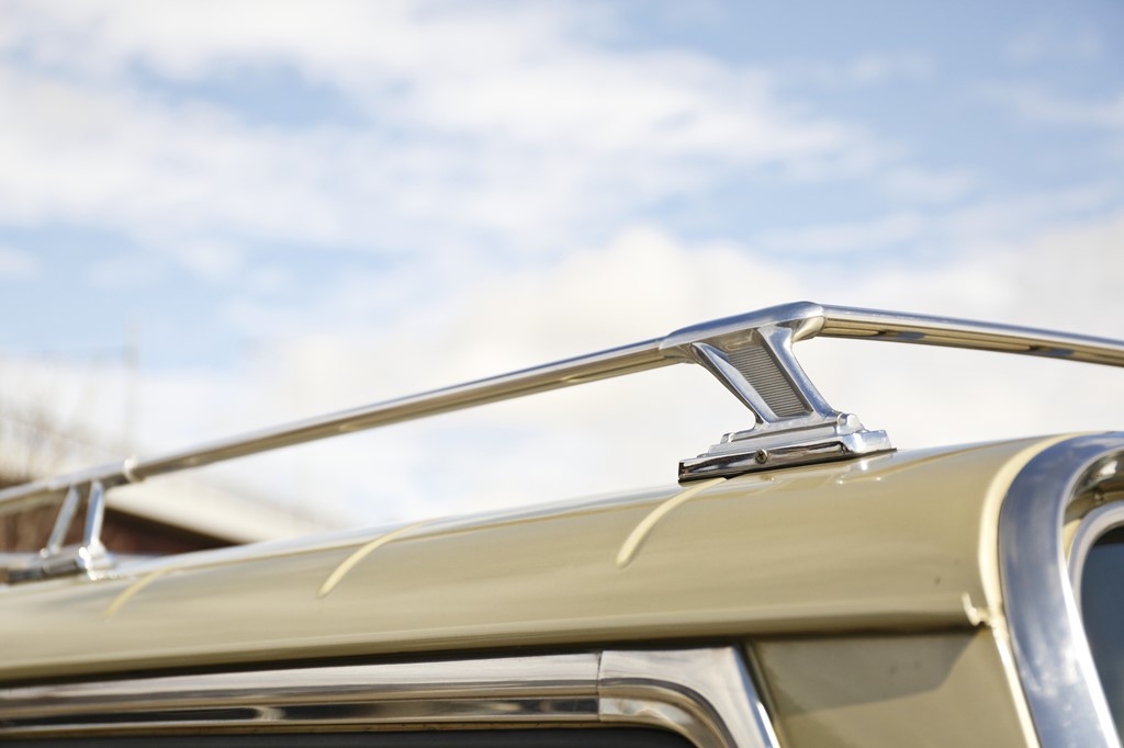 オプションであった純正のキャリアは、クロームメッキを使用。台座の部分などが凝った作りとなっており、現在では考えられないような手間暇が掛かっている。富裕層に向けた実用車であったので、キャンプなどで必要不可欠だったはず。