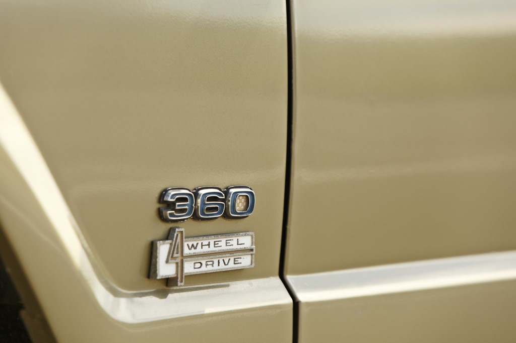 リアに付いたオリジナルのエンブレム。360はAMCを代表するV8エンジンの標記で排気量(5.9ℓ)を表す。この世界初の4WDとなり、当時としては画期的な仕様だった。