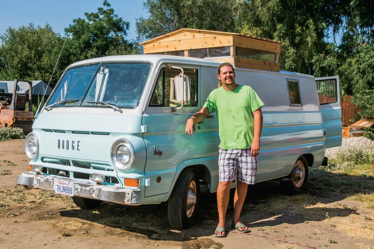 ダッジA-100シリーズのロングバンとして知られるA-108を所有するのは、カーレストアのショップを営むポールさん。内装はフルカスタマイズしたうえ、天井に穴をあけて自作のウッドトッパーを設置。週末はこれでレジャーに出かけ、その地の風景をここから眺めるのが至福の時だという。