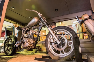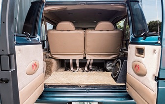 今回紹介する車両もラムバン生産の最終年式となる’03年モデルのDEEZERだ。内装も当時のオーナーの希望でセカンドシートとサードシートは簡単に取り外せるようになっているため、シートを外せばバイクを積むことも可能なのだ。