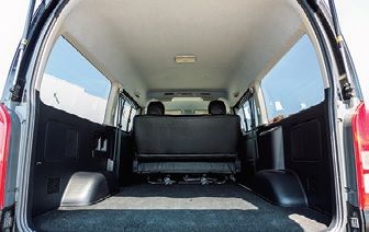 という。取材車両は厳密にはハイエースではなく、販売チャンネルが異なる兄弟車、レジアスエースのバンだそうで、ワイドボディ、ミドルルーフトいうボディに折りたたみ式のセカンドシートを持つモデル。ラゲッジスペースはかなり広大だ。