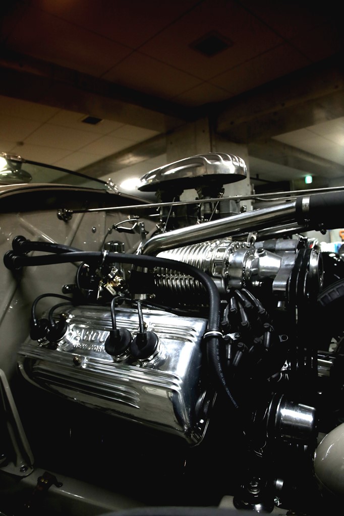 このモデルAロードスターは、1939年にビルJベアーというホットロッダーが製作を開始して戦後に完成し、以後64年間所有していたヒストリーを持っている。そんな歴史あるホットロッドをレストアし、さらに日本で手を加えながら乗られている一台だ。もちろん先人へのリスペクトを込めて、なるべく原型を崩さないようモディファイしており、今年はワンオフのアルミ製エンジンフードを追加して、製作開始から80年経った今も進化し続けている。