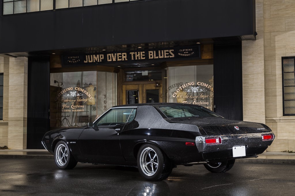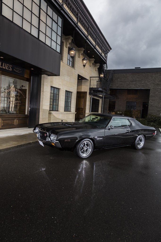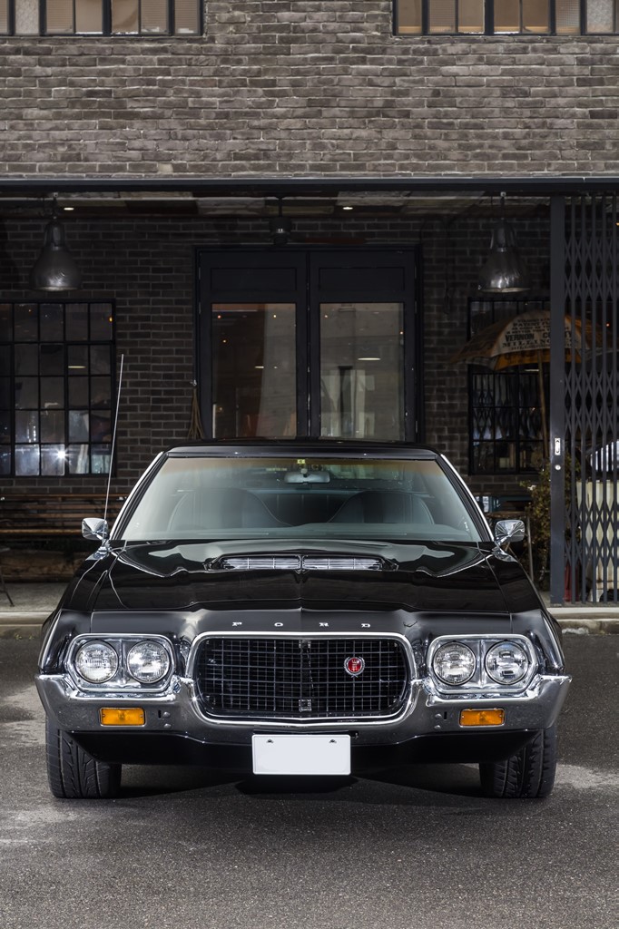 【1972 FORD GRAN TORINO】シンプルなブラックボディがグラマラスなボディを強調。