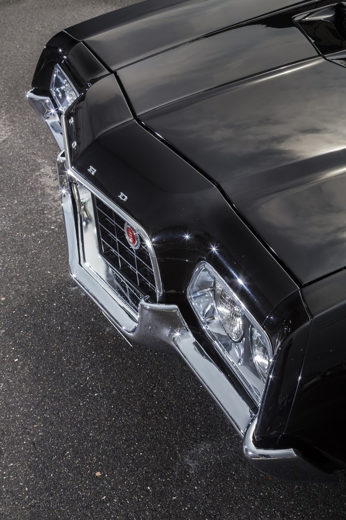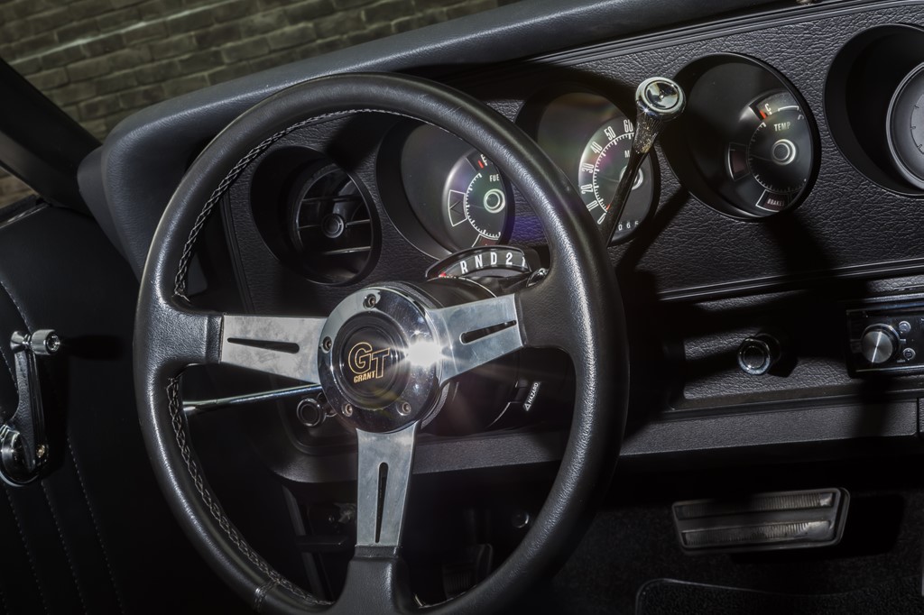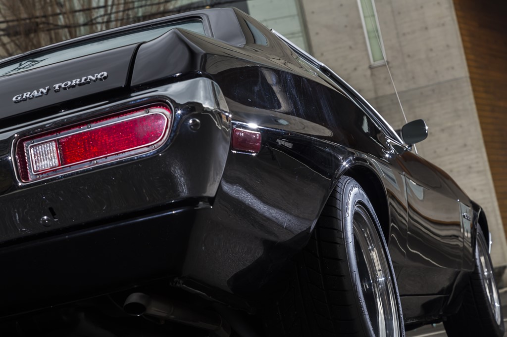 撮影車両は、そんな’72年のグラントリノをベースに、オリジナルでは設定のなかったブラックにリペイント。さらに日常の使用に耐えられるように、エンジンや足回りを中心にアップデートを行った個体だ。