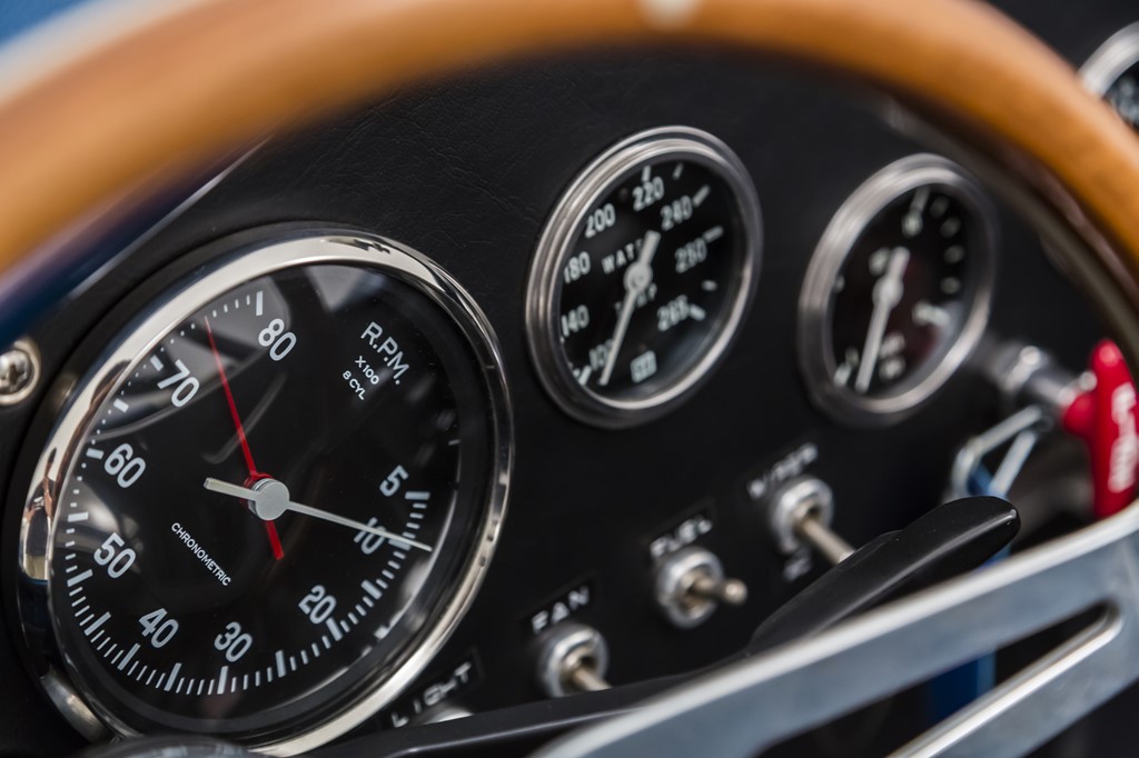 撮影車両は、数あるリプロダクションメーカーの中でもアルミボディ製造を得意とするカーカム社製のレプリカ。これをベースに、’64年式で、アメリカ人ドライバー、ケン・マイルズがドライブしたシリアルナンバーCSX2431と呼ばれる車両を忠実に再現したマニアックな個体だ。
