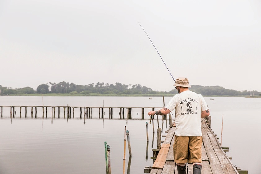 禁酒法時代からホットロッドカルチャーが盛り上がったゴールデンエイジまで旧き良きアメリカのカルチャーに精通する曽原さん。氏が手掛ける「ウルフマンバーバー」を訪れると、その世界観がひしひしと伝わってくる。自身もポマードで固めたフェードスタイルにタトゥー、ホットロッドといった男らしいスタイルを地で行くのだが、そこに昔から大好きなバス釣りが加われば、こんなライフスタイルになるわけだ。