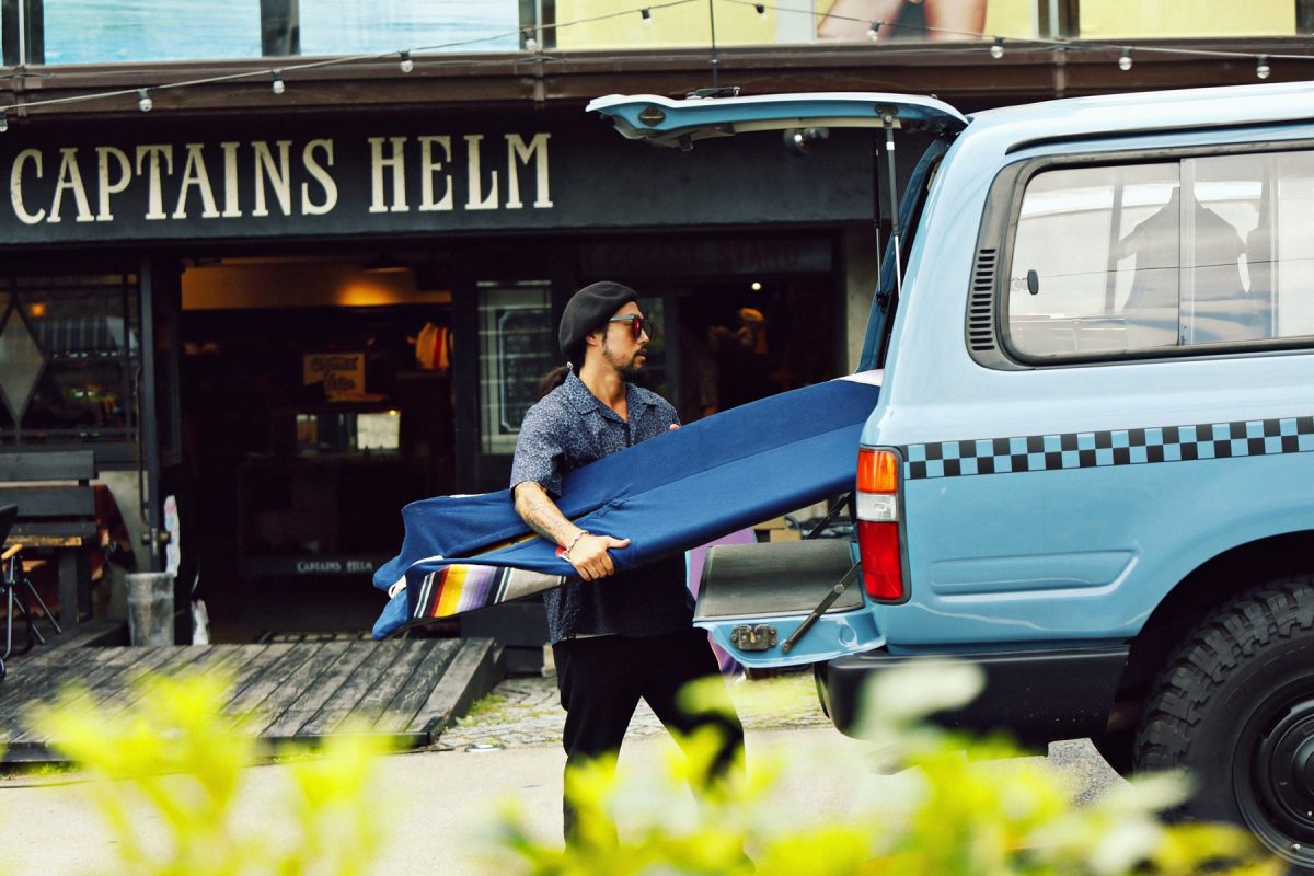 「ランクルは60と80を所有していて、その時々の気分で使い分けています。カリフォルニアに行くとあっちの連中がプライドを持って、日本車に乗ったりしているじゃないですか。そんな感覚で自分も日本車に乗りたいなと思ったんです。年中サーフィンに行きますし、キャンプやスノーボードも楽しむので、悪路を難なく走れるというのが絶対条件。特に雪道の時は60よりも80の方が安心して運転できますね。数年しか変わらないですけど、確実な進化を体感できます。エクステリアは60の方が好み。だから80を60のようなルックスにして、クラシックなブルーグレーに。日本車だけどカリフォルニアの匂いがする。そこが狙い所です」