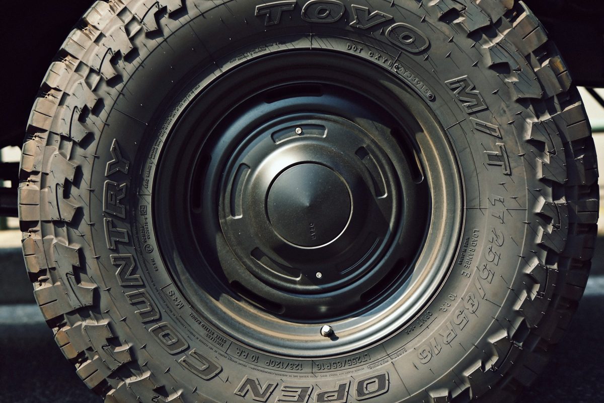 黒いホイールとマッドテレーンタイヤで、男らしくも都会的に仕上げた。
