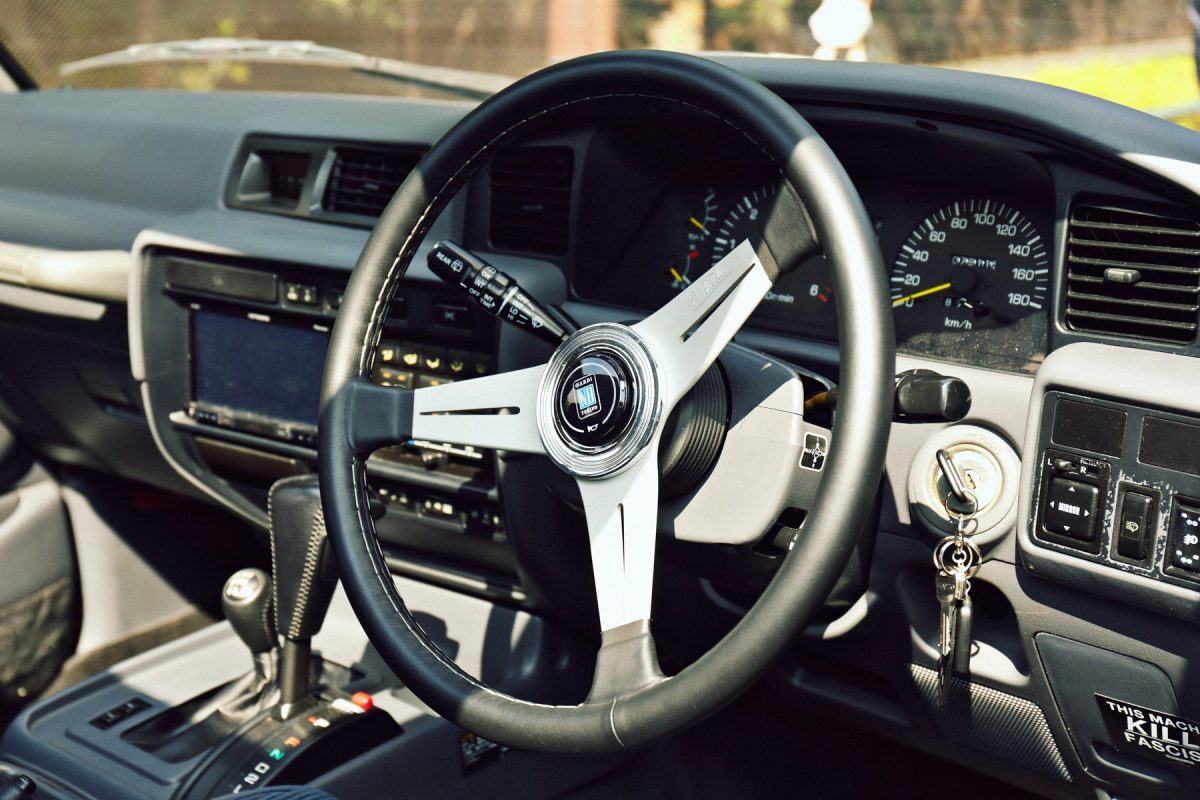 フレックスでもキャプテンズ・ヘルムカスタムとしてオーダーが可能。ハンドルはクラシックなナルディ。