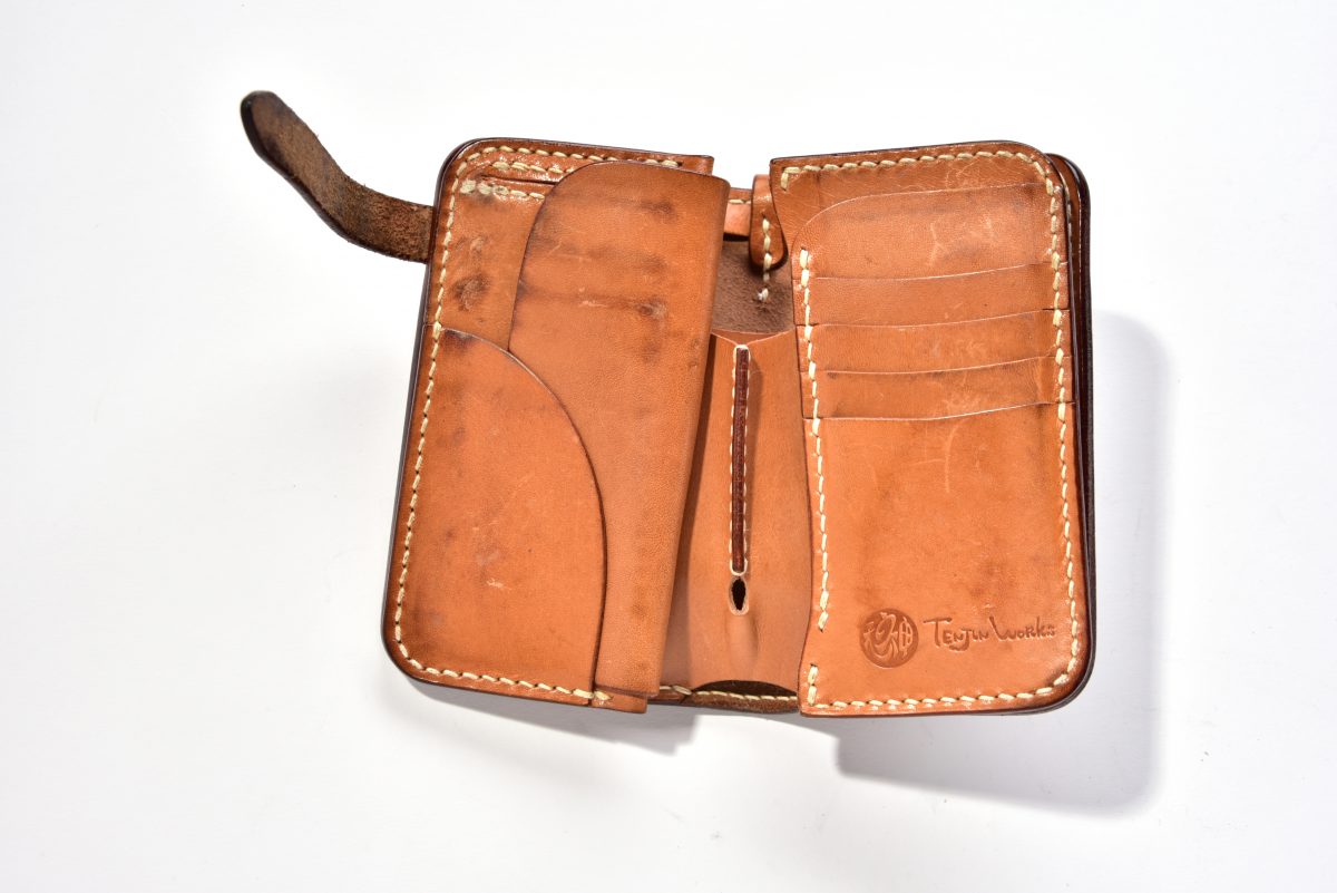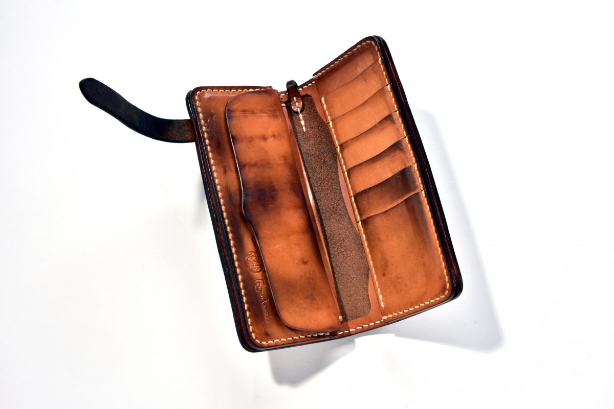 絶妙な色合いのこの財布、元はなんとコバルトブルー。この育て方はまさにレザー上級者の所業だ。