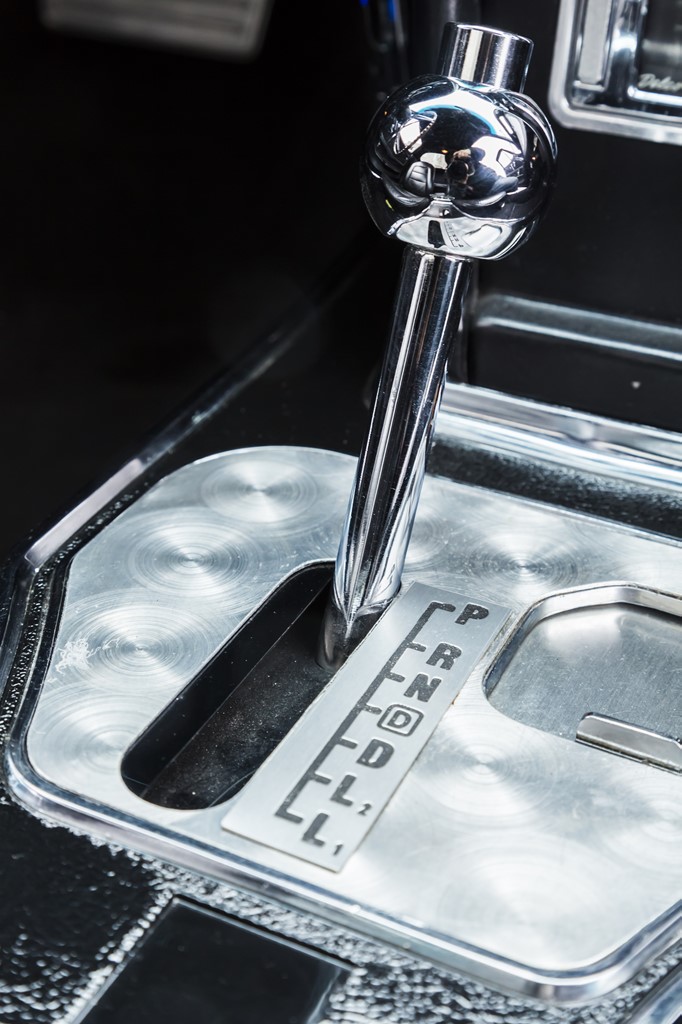 オリジナルは4速マニュアルだが、この車両は700R4 という近代的な4速ATに換装されている。シフトゲートはオリジナルのテイストで4速AT用に書き換えられている。