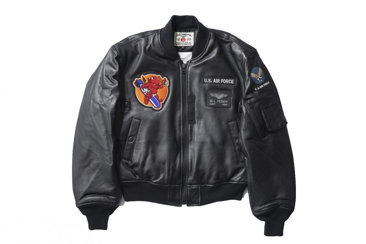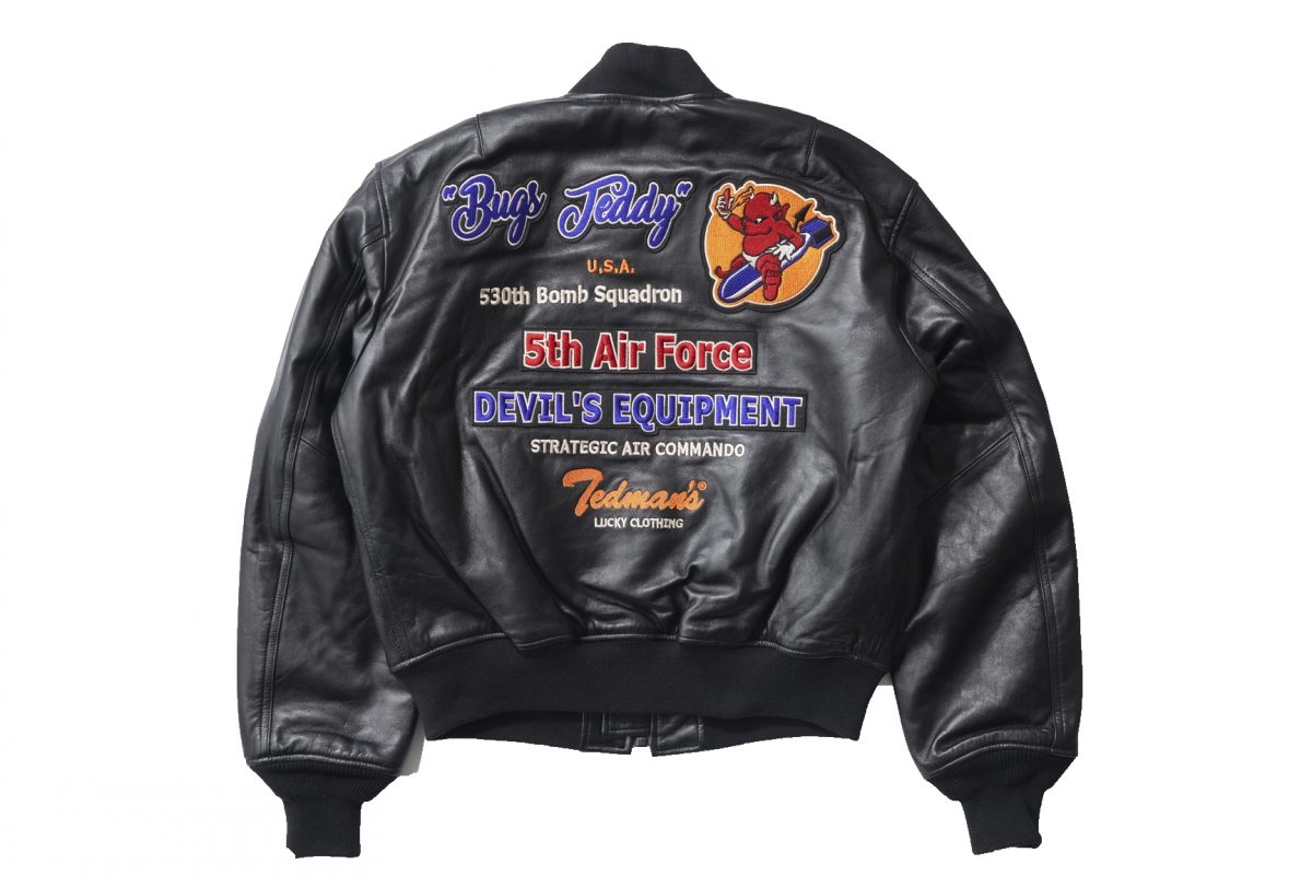 柔らかく、しなやかなラムレザーを使用したMA-1。お馴染みテッドマンのグラフィックがフロント、バックともに大胆に刺繍で入れられたキャッチーな1着。6万6000円(エフ商会 TEL03-5383-0003)