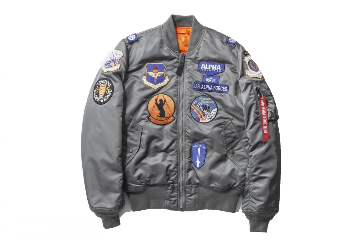 コントラクターとして活躍していたアルファ社。ヴィンテージアーカイブからカスタムモデルをベースに大小13個のワッペンがインパクト大。2万6180円(アルファ インダストリーズ[エドウイン]TEL0120-008-503)