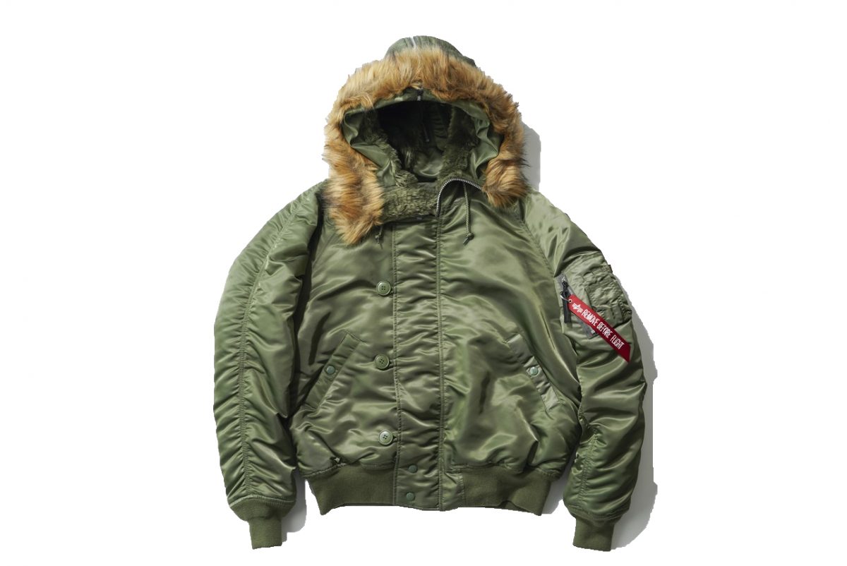 パイロットの操縦の妨げとならないようショート丈でデザインされたN-2B。首の上まで開閉が可能なフロントファスナーとフードが印象的。2万8380円(アルファ インダストリーズ[エドウイン]TEL0120-008-503)