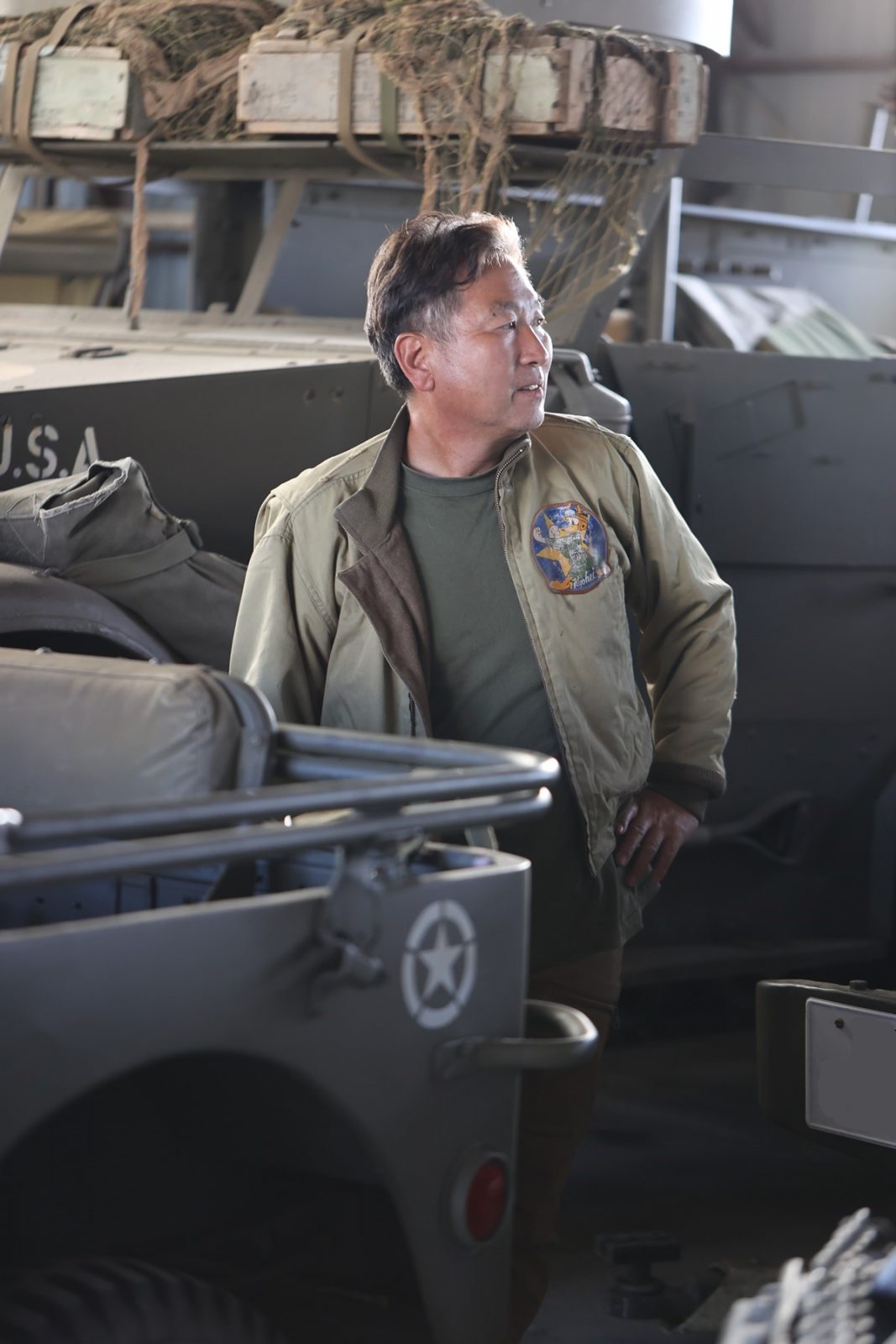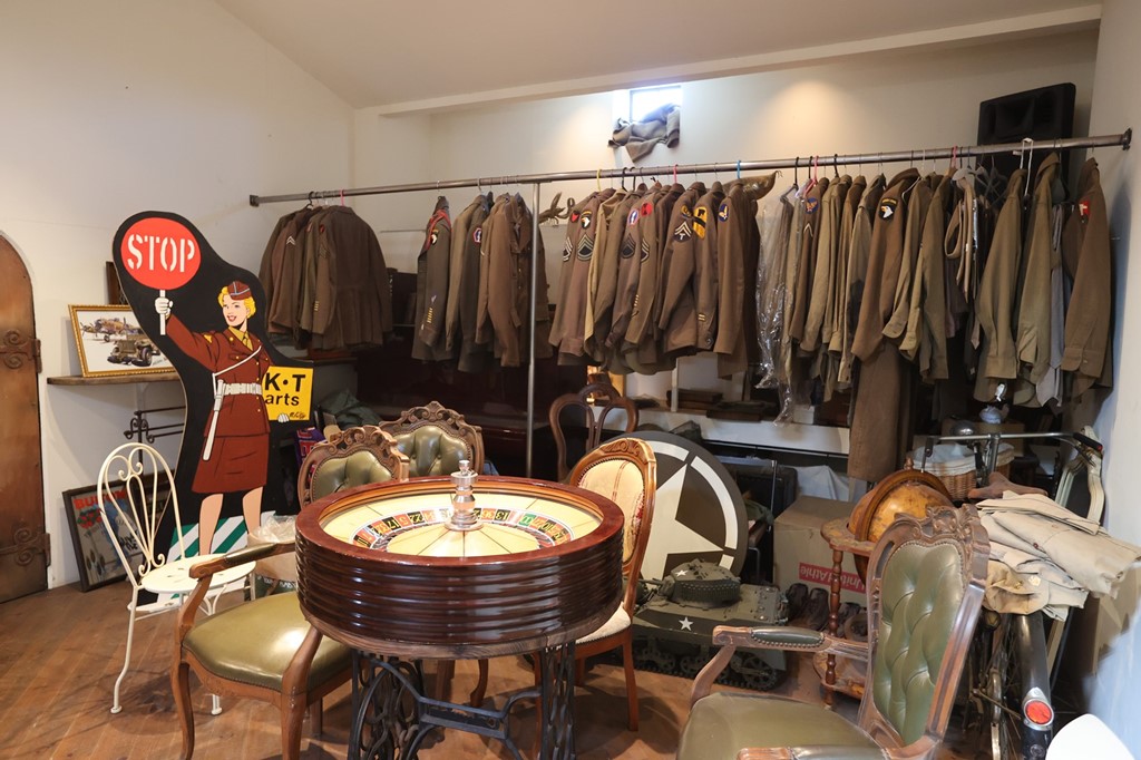 「原点はまさに『コンバット』。だから私のコレクションはほとんど第二次世界大戦のアメリカ軍のモノです。イベントは仲間内で相談して制服を着る人間の背景まで考えて装備を用意します。小学生の頃にプラモデルやジオラマを作るのが好きで、『コンバット』を見て米軍の世界観にハマって、クルマや道具、装備も子供の頃から趣味が全然変わってないですね(笑)」