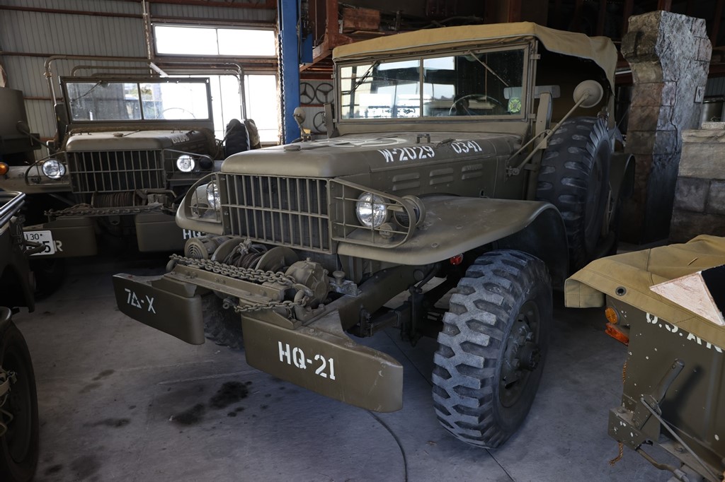 第二次世界大戦時ダッジで開発されたコマンドカー。WC57は後部座席を有するソフトトップの乗用車型で、指揮車両や偵察車として使用された。奥に見えるのは’45年式WC52で、オープントップのウェポンキャリアと呼ばれるモデル。