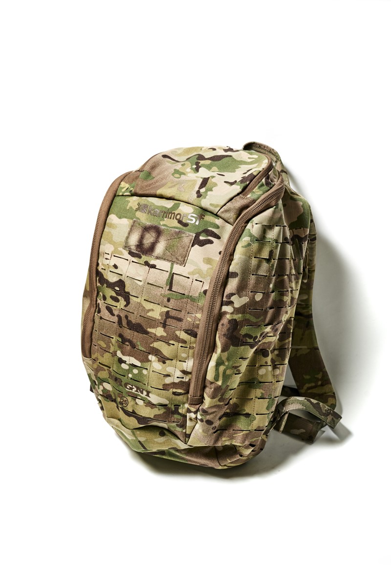 3面にレーザーカットモールを配したカリマーSFのバッグパック。高耐久撥水加工を施しているため雨に強く、用途に応じてポーチを繋げて収納量を増やせるのが魅力。4万4000円