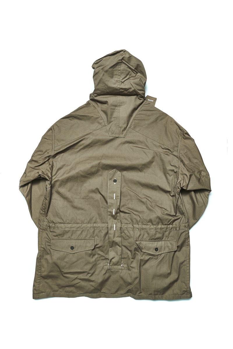 第二次世界大戦時、ドイツ軍で採用された山岳パーカのレプリカ。バックのベルトは股下を通してフロントと繋いで裾のバタつきを防ぐディテール。1万6500円