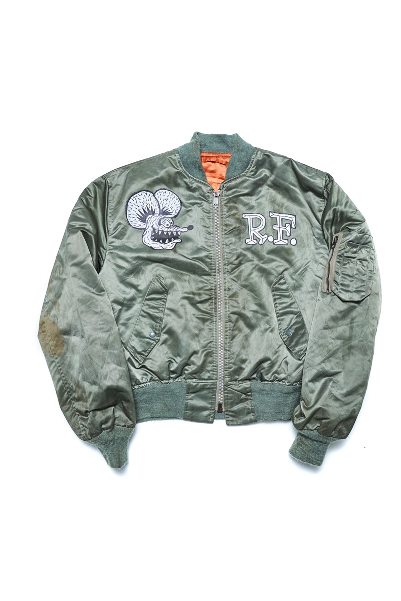 レプリカのMA-1にハンドペイントのRAT FINKが描かれたカスタムモデル。カスタムカルチャー色が強く、カーガイやバイカーにオススメ。1万1000円