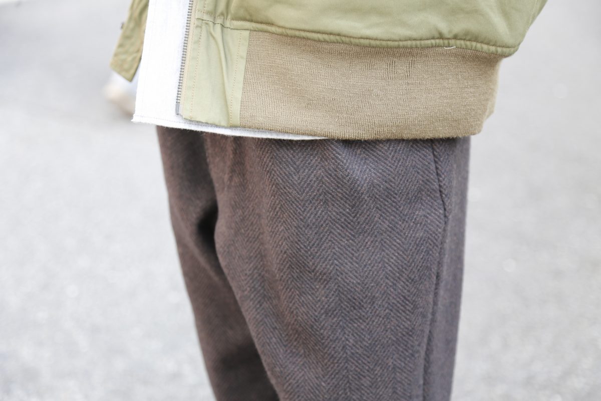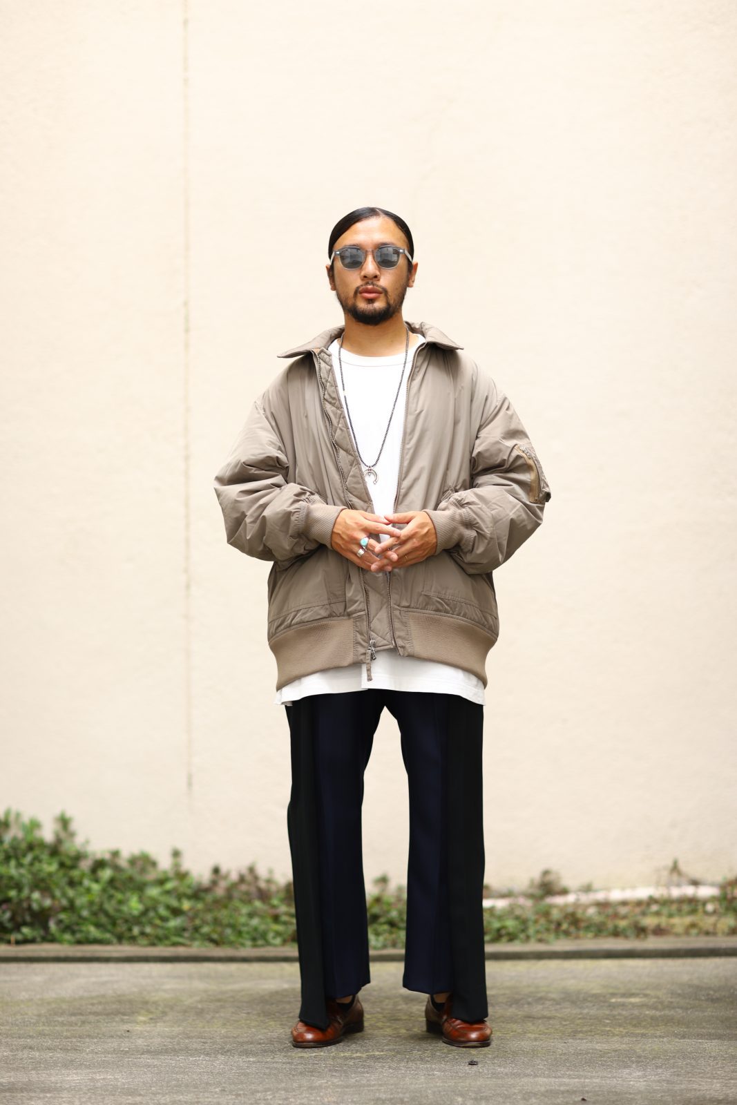 近年主流となっているビッグシルエットのコーディネイト。ボリュームが出やすいシルエットが多いフライトジャケットだけに、その大きさを活かして着こなすのがポイントだ。