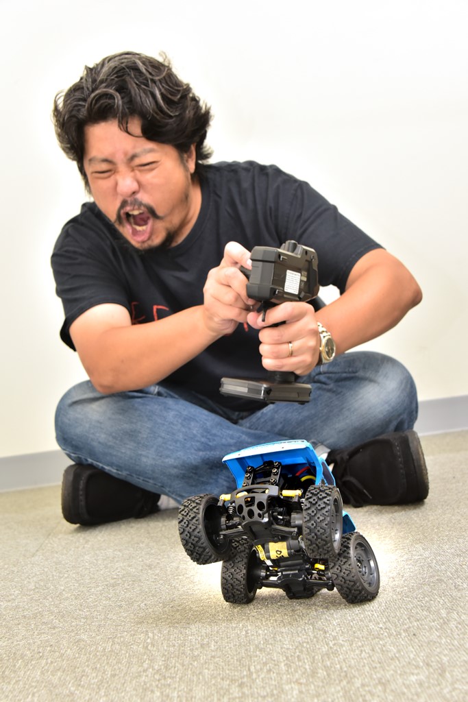 レースというとつい目を三角にしてしまいそうだが、コミカルシリーズのレースだと、それが自然と笑顔になるから不思議。ウイリーしたり転倒したりと、見ている人も楽しめるのもポイントのひとつ。元祖コミカルシリーズとでもいうべきワイルドウイリー2や写真のジムニーなども外遊びのおともに連れていきたいRCカーだ。