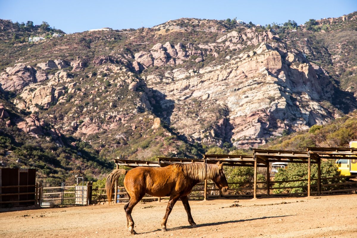 マリブの山並みのなかで自由に放牧されている動物たち。太平洋沿いはセレブが住む高級住宅地として知られるが、山側は自然にあふれている。