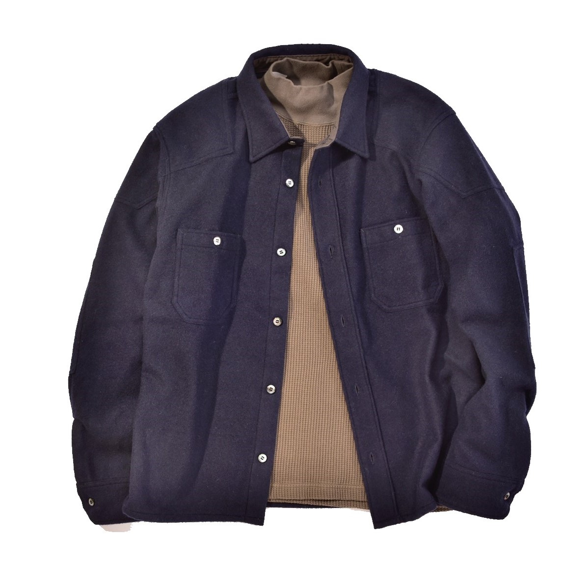 5.ADDICT CLOTHES/PADDED WOOL SHIRT×HEAVY WEIGHT WAFFLE MOC NECK