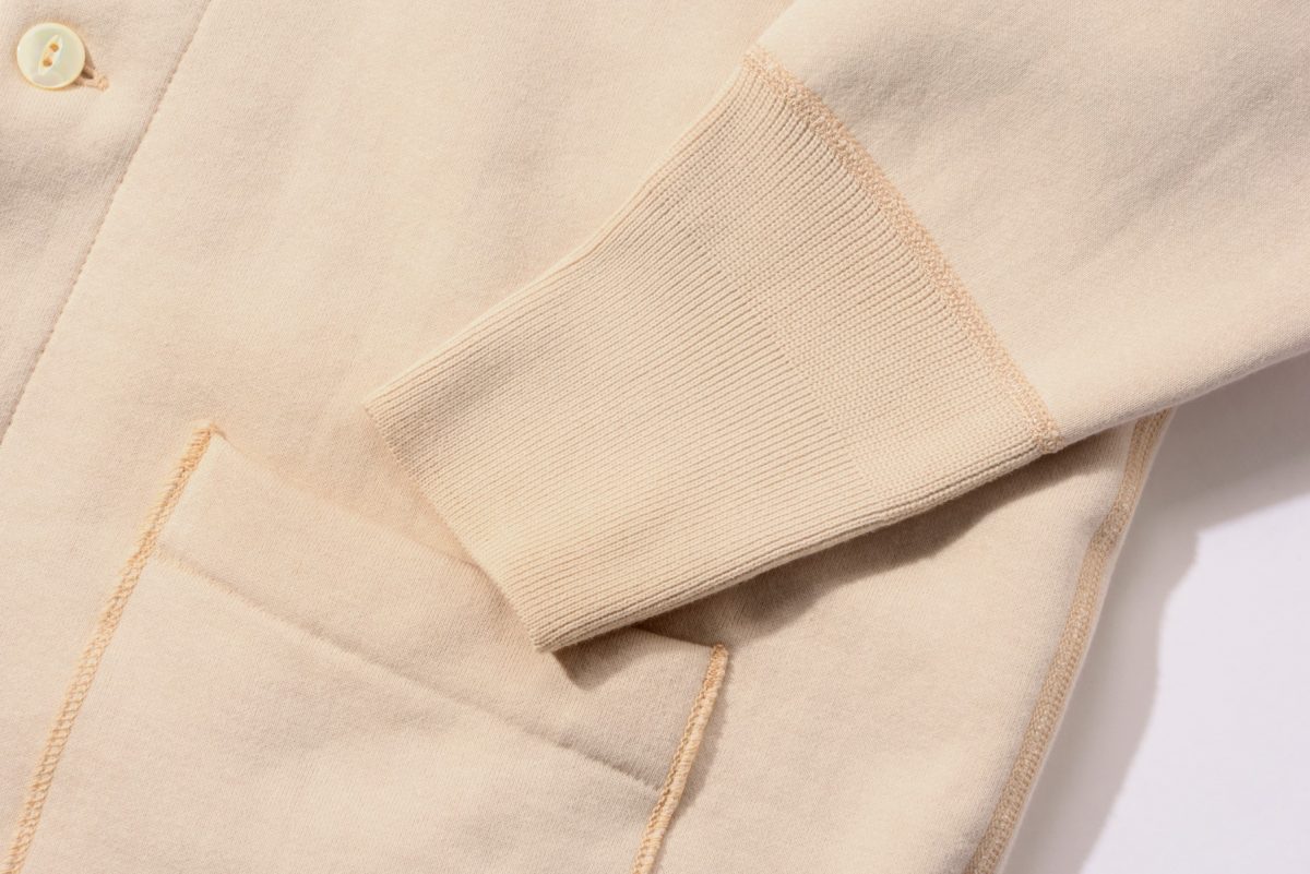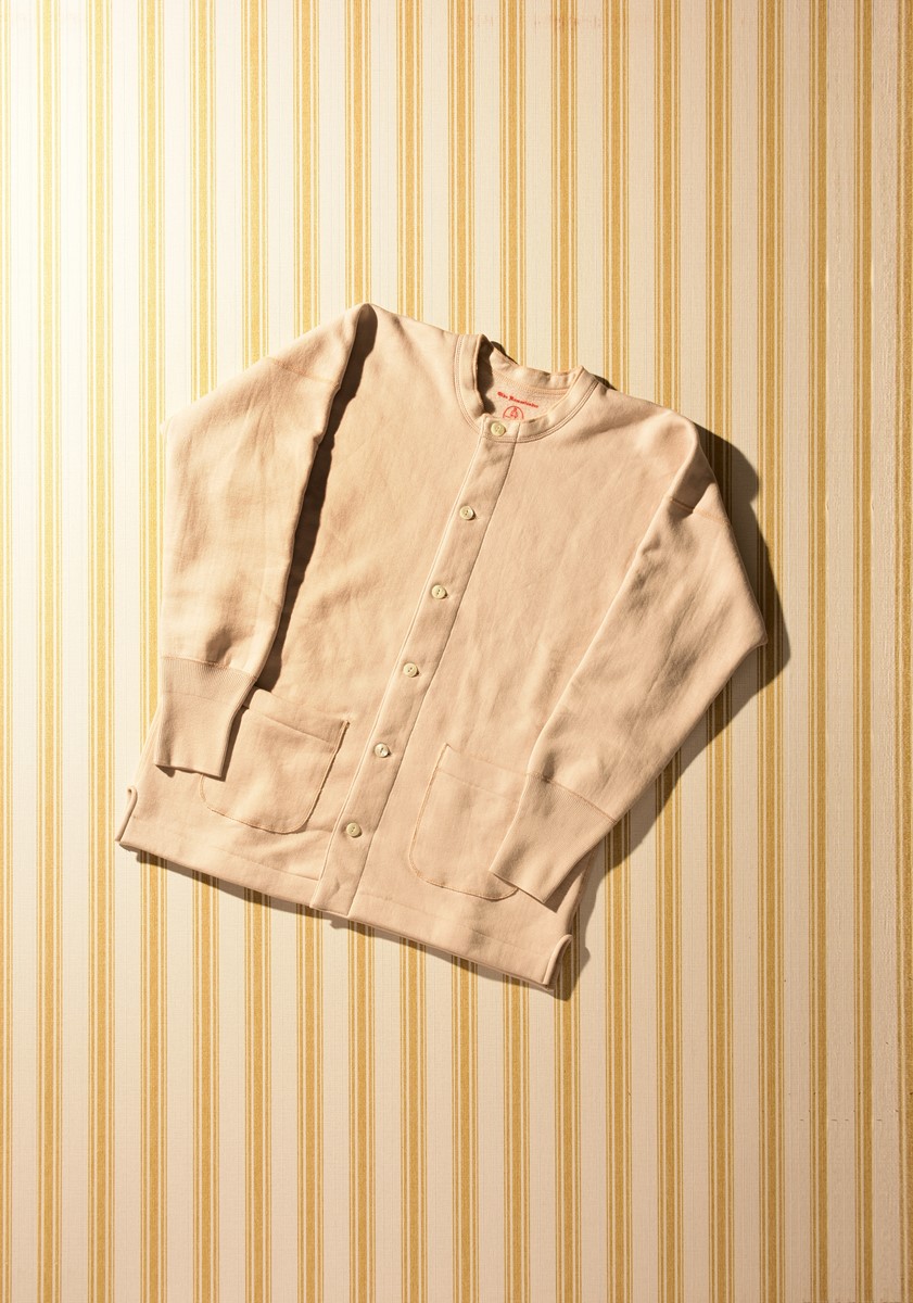 これはそんなヴィンテージをベースにしながらコットンフリースで仕上げた1着で、フロントにポケットを付けることで、ベースは下着ながら、スウェットカーディガンのように着られるアイテムへと再構築。厳しい冬にはインナーに、春先はアウターにもなってくれるスペックにやられて購入。その柔らかな雰囲気とナチュラルなカラーリングはどんなスタイルにも合わせやすいぞ。