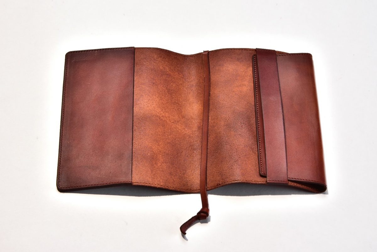 そんな俺にとって、願ってもないアイテムが登場した。革のブックカバー、その名も「レザーブックウエア」だ。バッグで有名な「VASCO」と、旭川の名セレクトショップ「TiL」のコラボによって生まれたこのブックウエアは、ハンドダイの絶妙な質感を持つVASCOの革を使っており、使うほどに読むほどに、風合いを増していく。