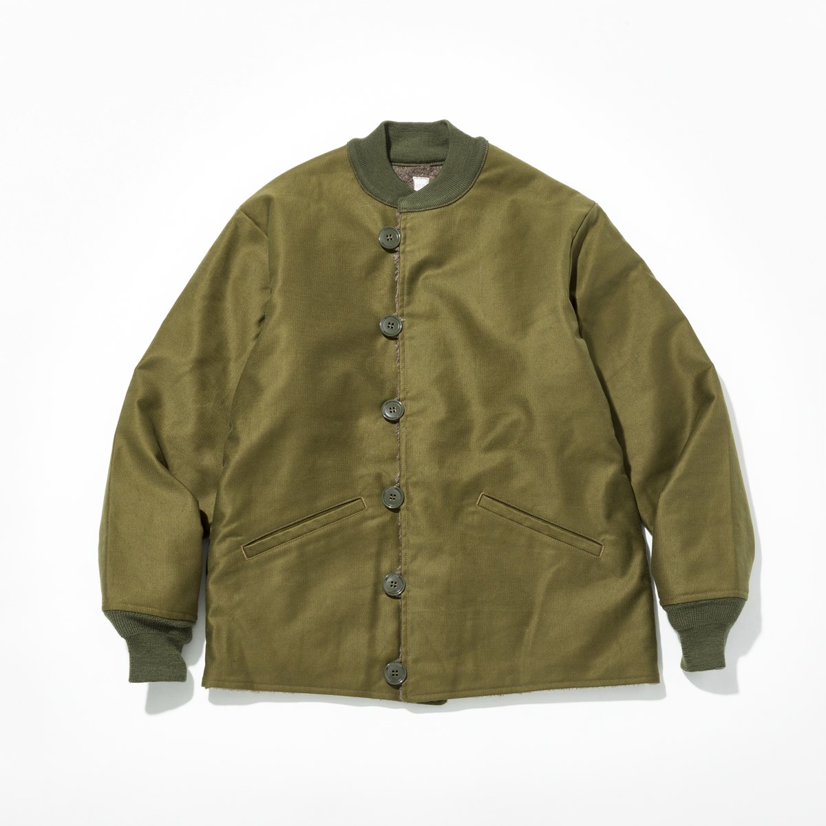 ヴィンテージでも人気の高いM-43ライナーをデザインソースに、ジャングルクロスやアルパカ混パイルで仕立てた逸品。N-1デッキジャケットと同じ素材を使っているため保温性も抜群で、気軽に羽織れるアウターとなっている。