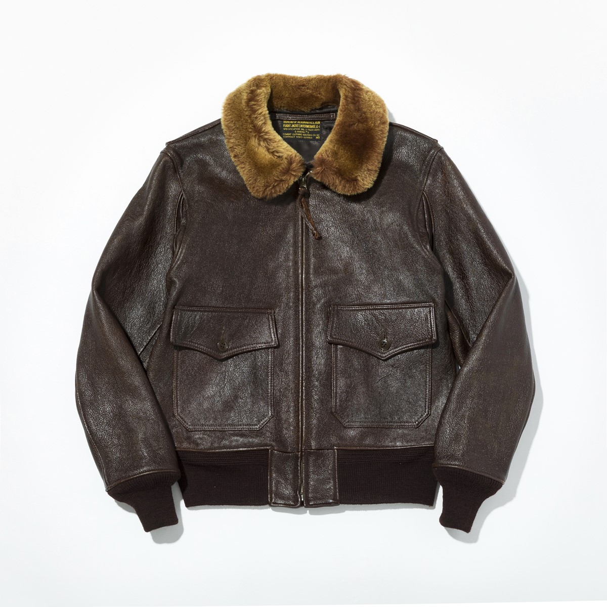 ひさびさにフェローズのコレクションに加わったG-1フライトジャケット。艶のあるゴートスキンを使い、ムートンボアは毛先をゴールドに染色。ヴィンテージの仕様も忠実に再現しつつスッキリしたシルエットを実現した。15万9500円