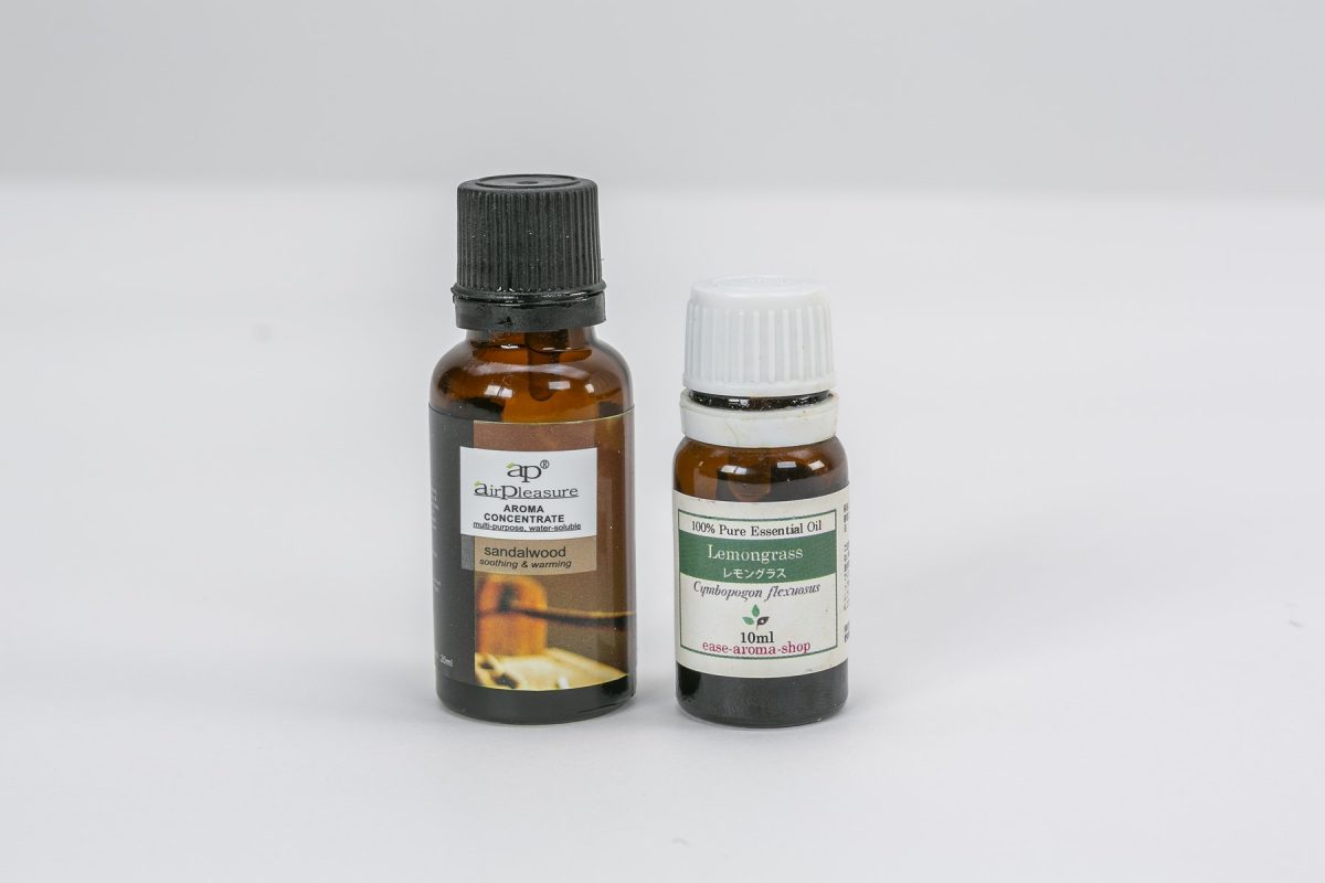 リラックス効果のあるアロマオイルを入れて香り付けするのもアリ。日本でも馴染み深いサンダルウッドなどがおすすめ。各300円〜