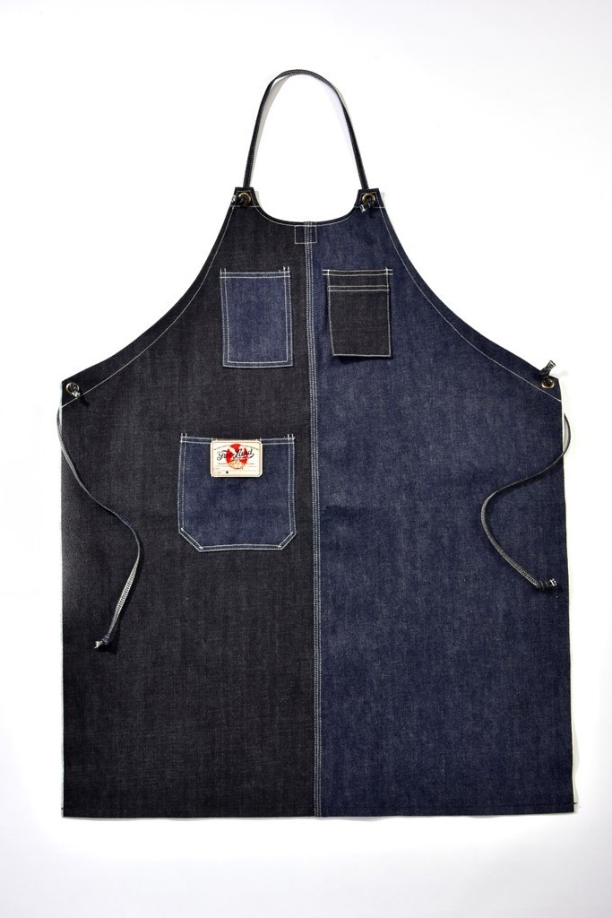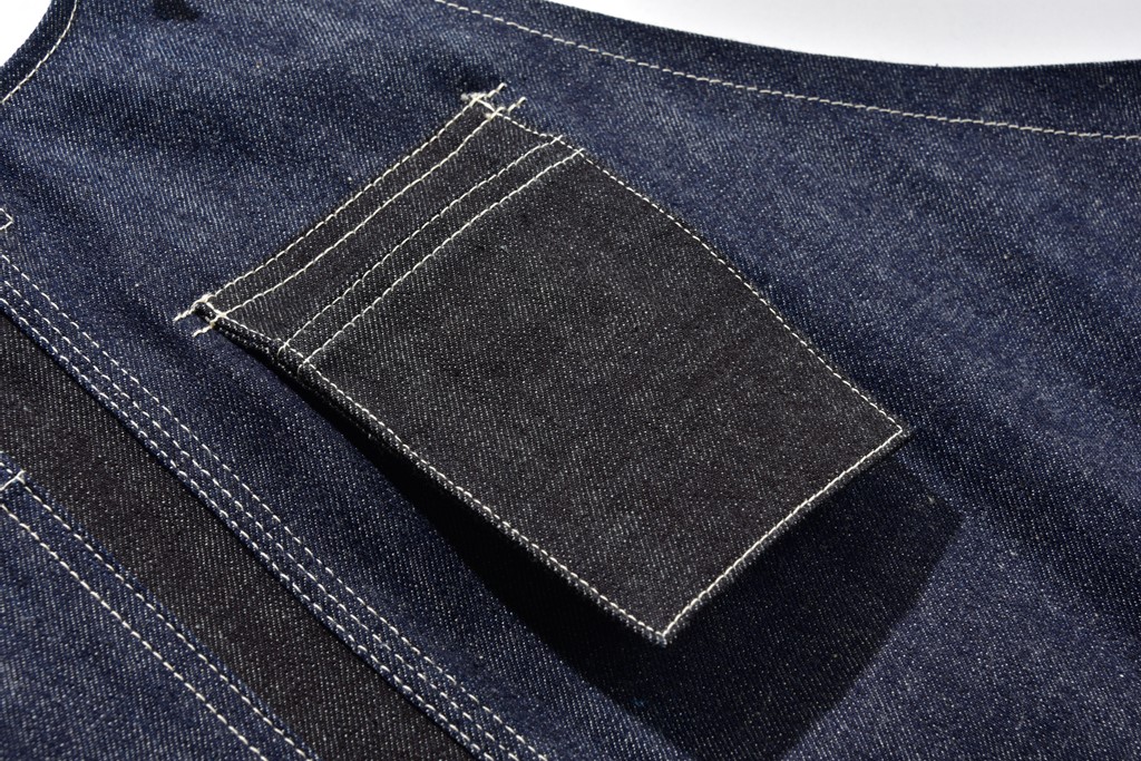 胸ポケットとツールポケットに加え、左胸にスウィンギングポケットを搭載したマニシストエプロン。両脇にはセルビッジを配し、ストラップはカットしていないベルトループを使用。1万4080円