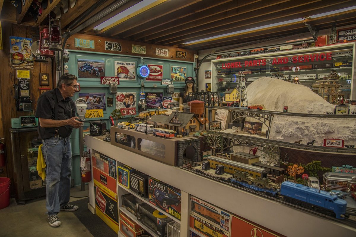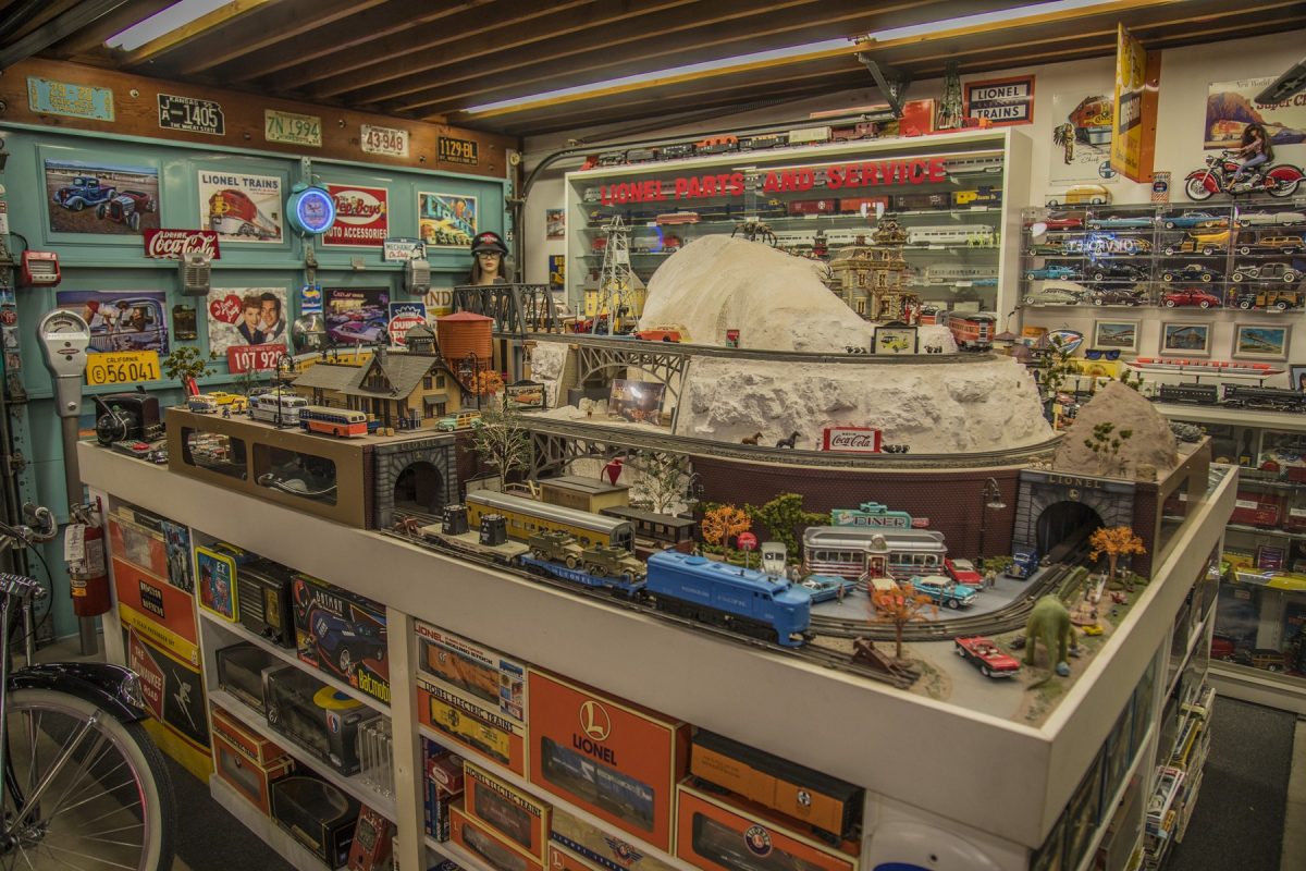 ここのオーナーのジェリーさんは、子どもの頃から遊ぶのはミニカーばかりだっという大のクルマ好き。大人になってもその熱は冷めず、さらには父親の趣味だった鉄道模型にもハマリ、自宅を購入してからこつこつとガレージをリノベーションして鉄道模型を走らせる空間を作り上げた。