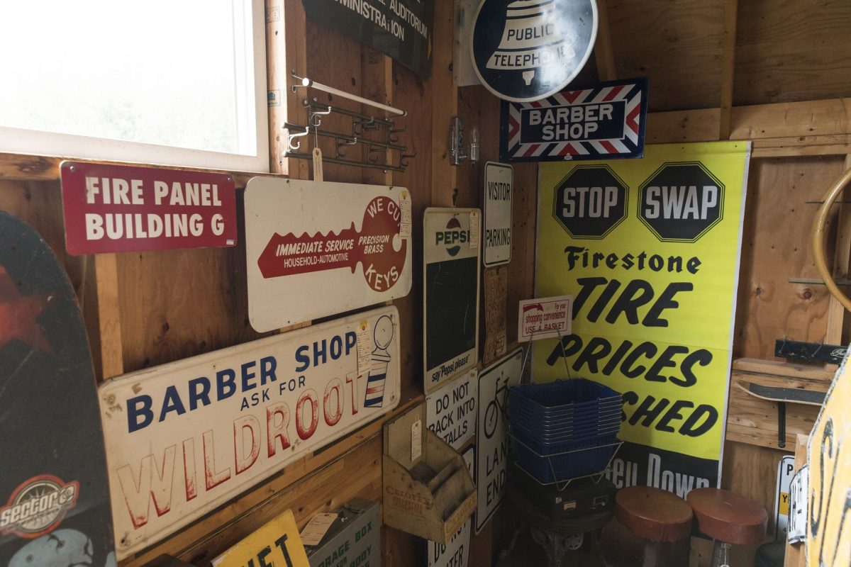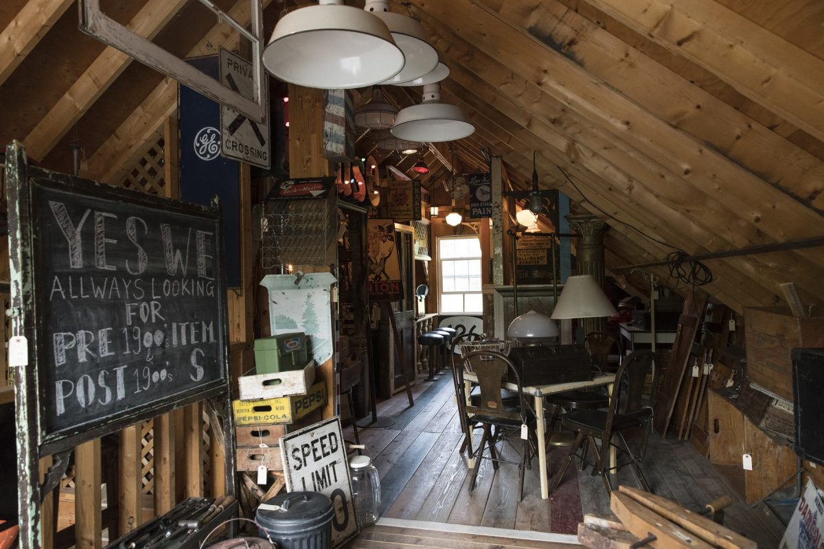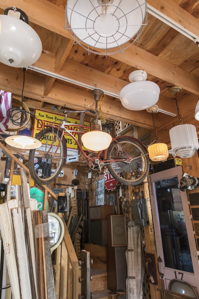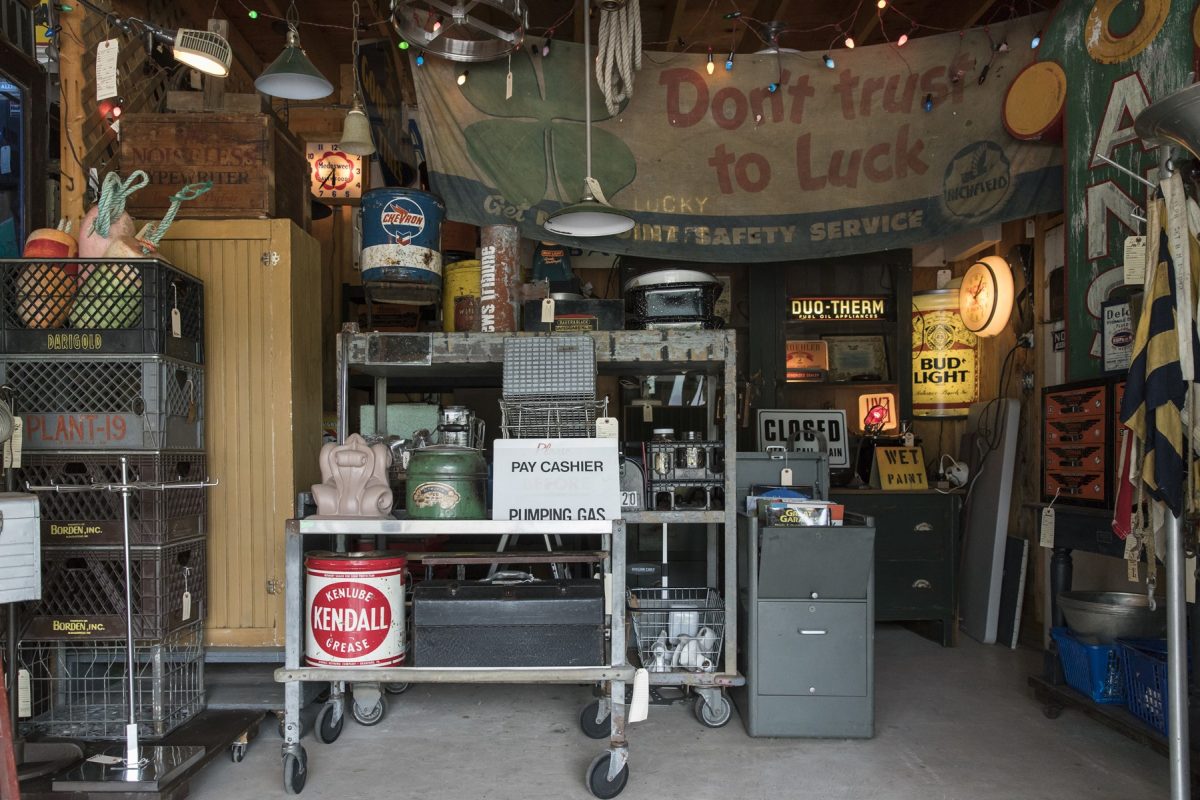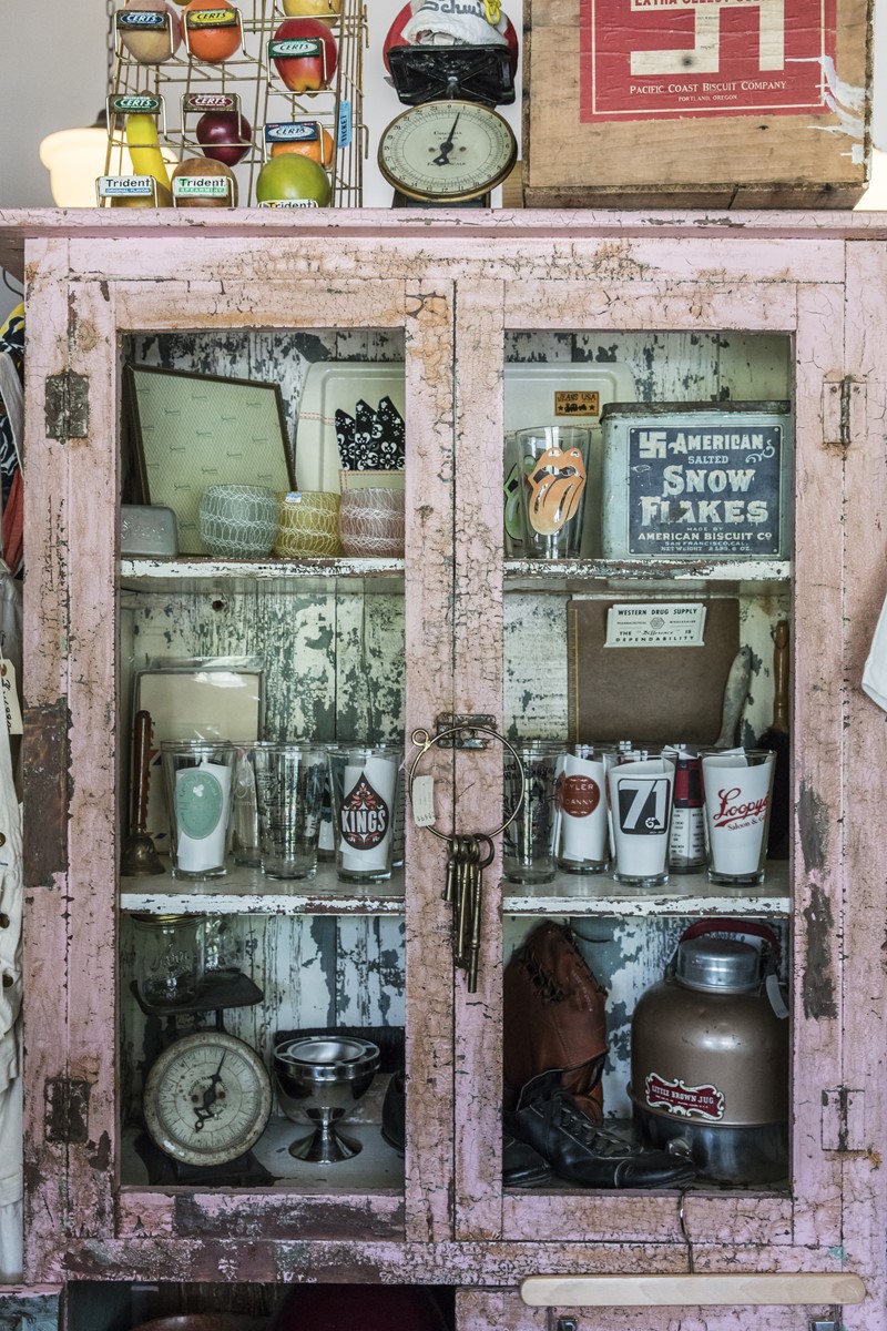 パラダイスバレーは2つの建物に分かれていて、母屋が洋服や小物、納屋がインテリアやアドバタイジングなどの大物がある。写真は納屋の2階で、家庭向けのアメリカンなヴィンテージファニチャーが揃う。