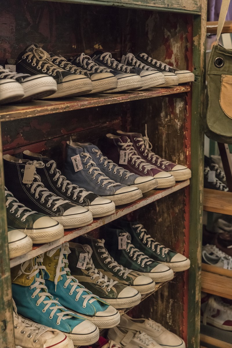 定番からレアものまでアメリカから買い付けてきたヴィンテージが並ぶ。アメリカ製コンバースだってこんなにストックあり!